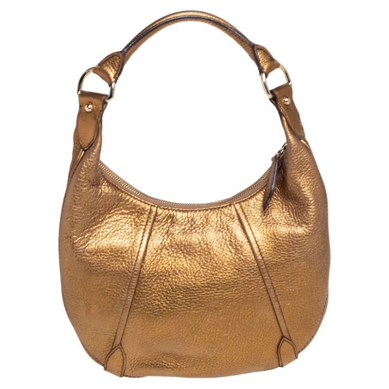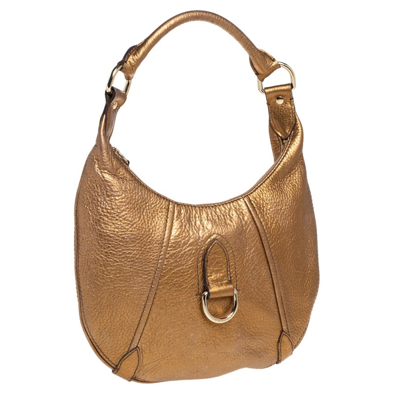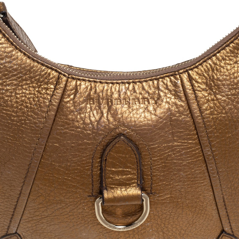 Burberry Metallic Gold Grained Leather Hobo