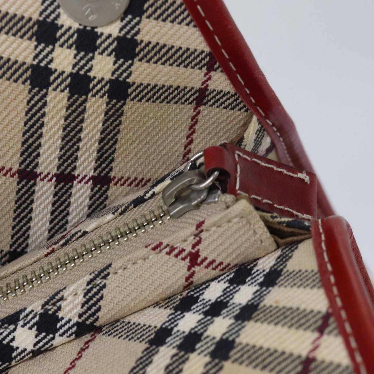 BURBERRY Nova Check Blue Label Hand Bag Canvas Beige Red Silver Auth ti1948