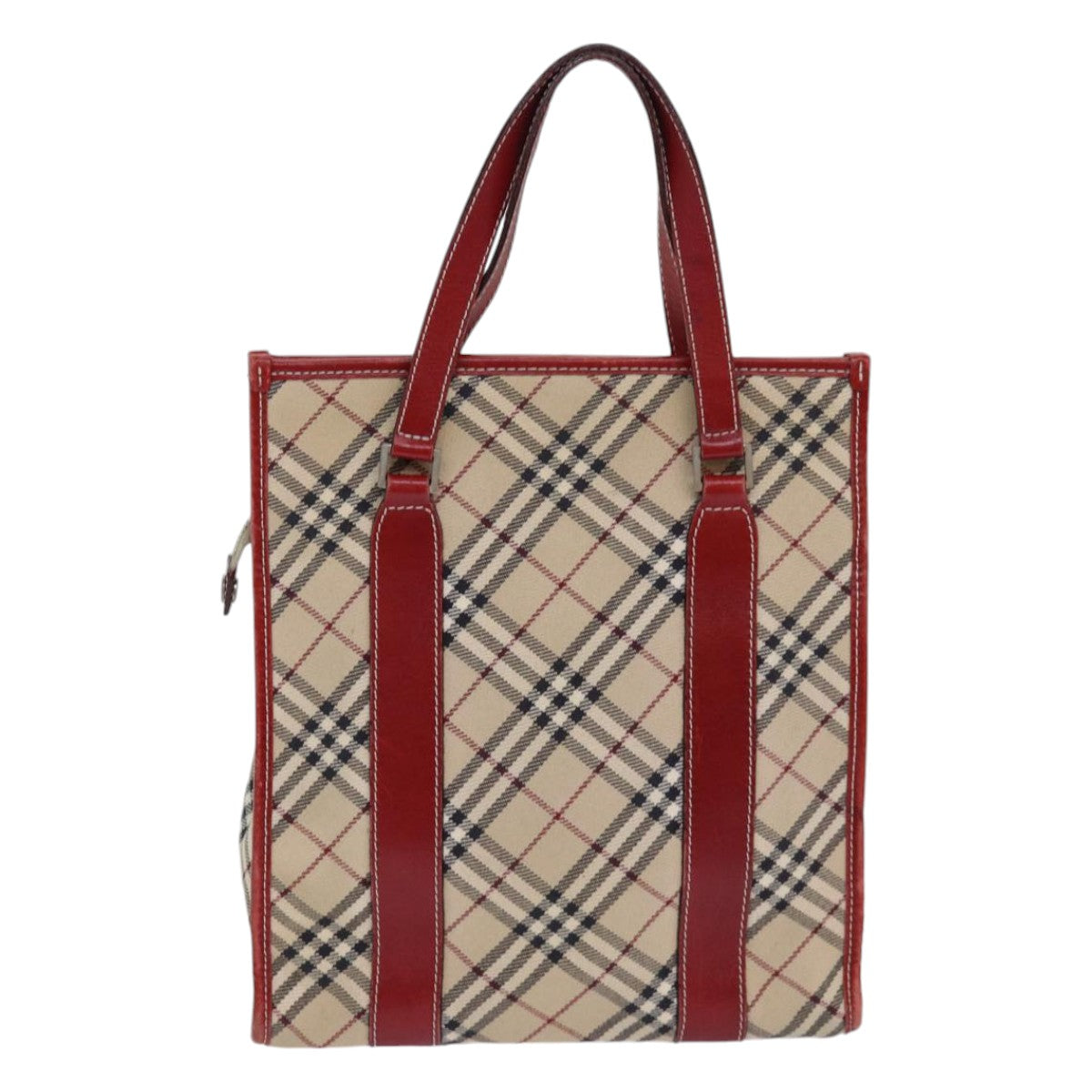 Burberry Nova Check Blue Label Hand Bag Canvas Beige Red Silver Auth ti1948