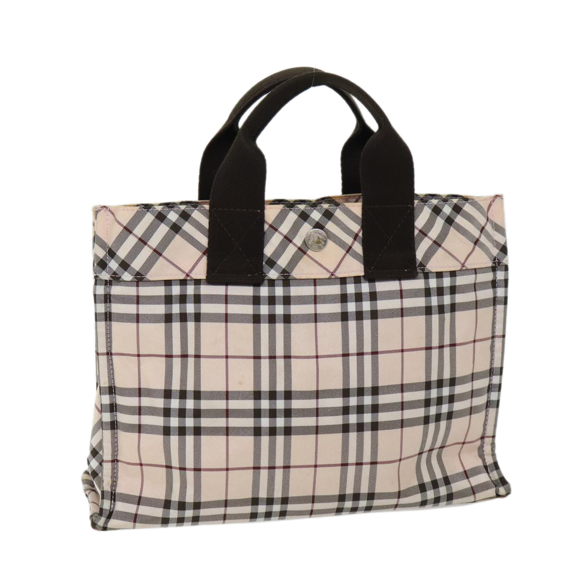 BURBERRY Nova Check Blue Label Hand Bag Nylon Beige Auth kk215