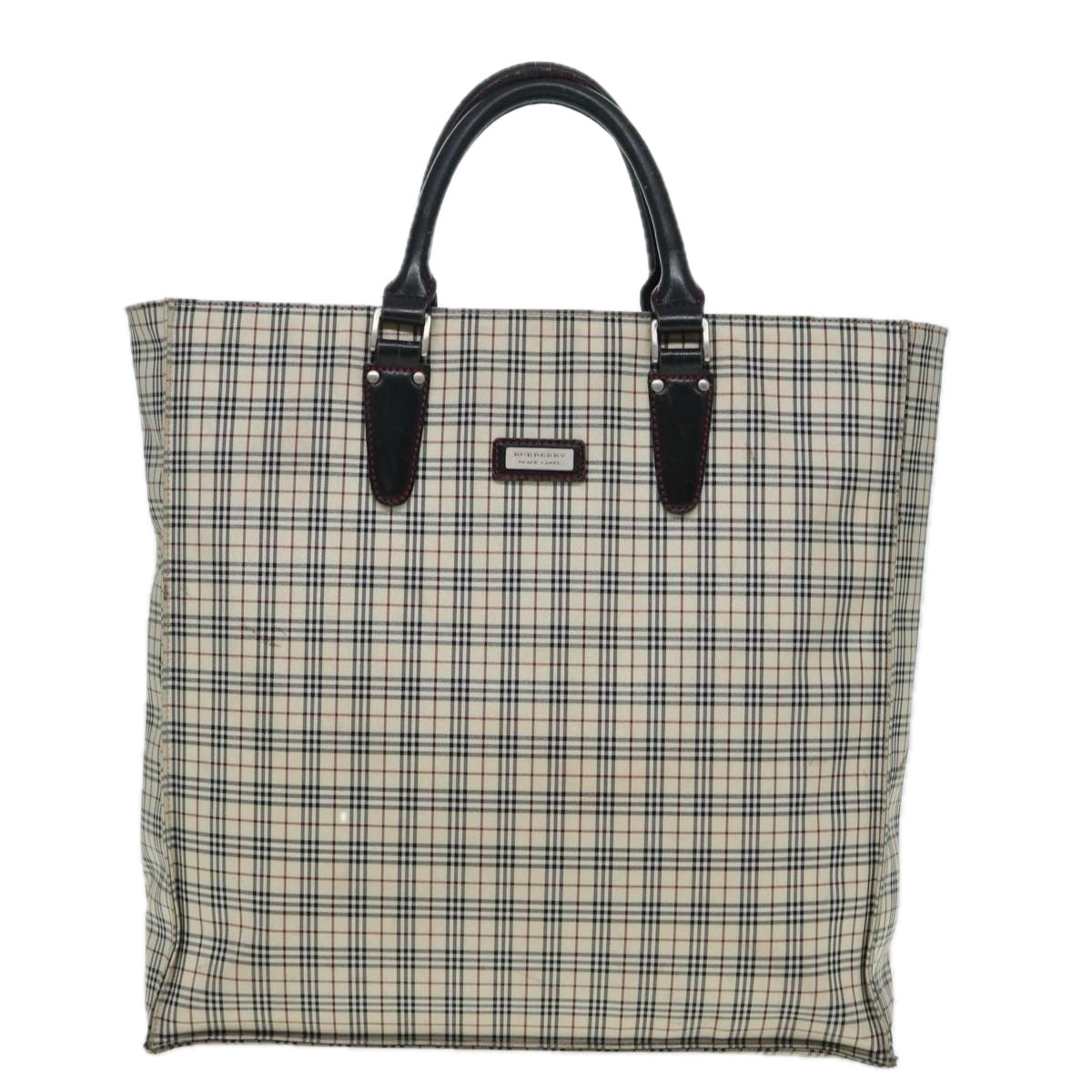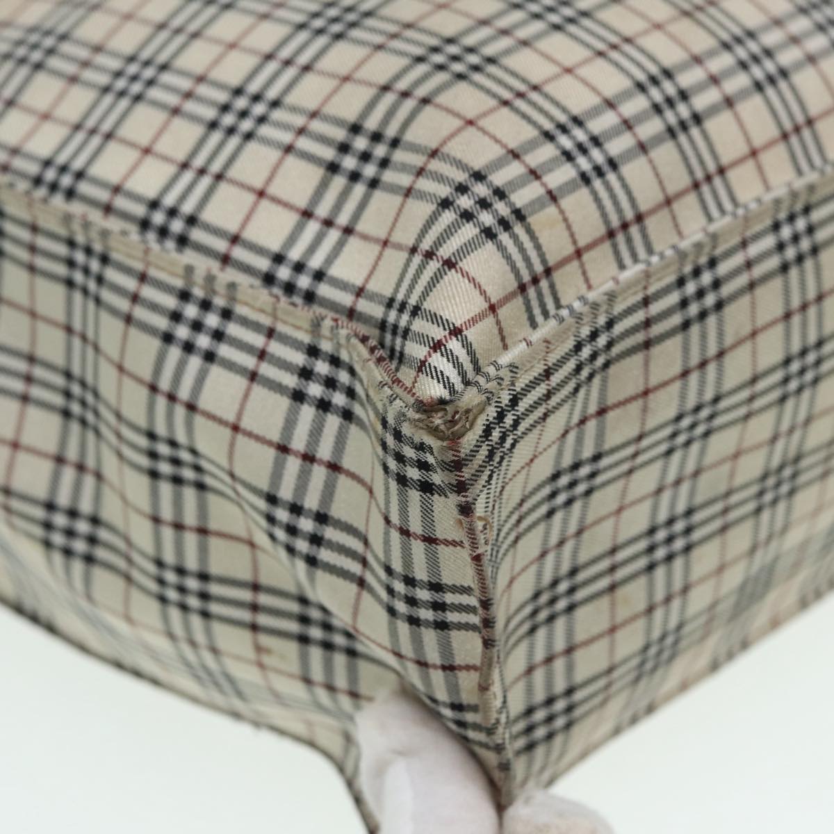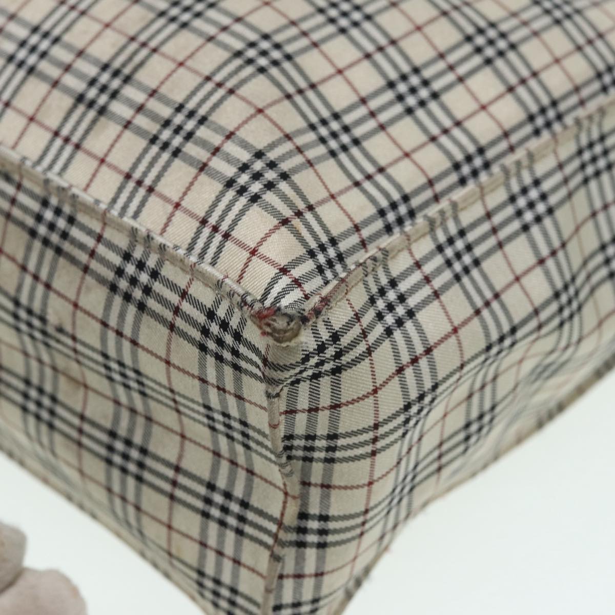 BURBERRY Nova Check Blue Label Hand Bag Nylon Beige Silver Auth bs16646