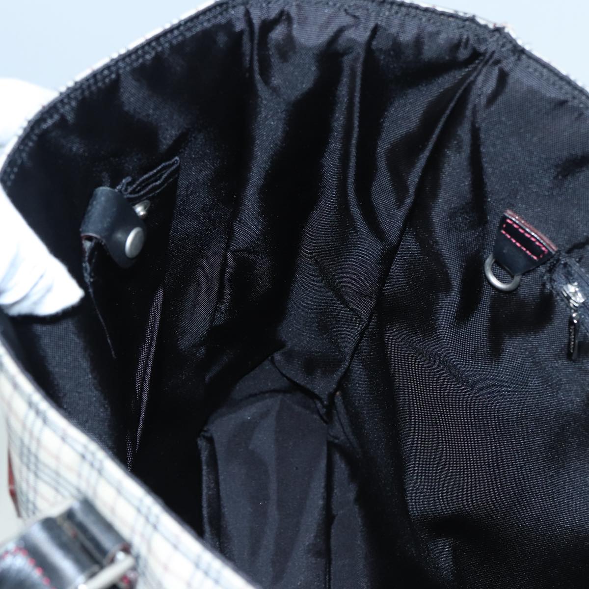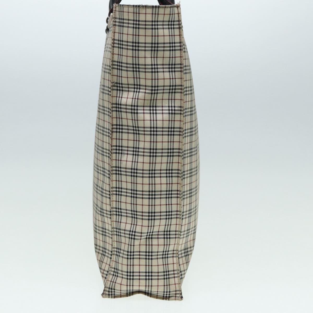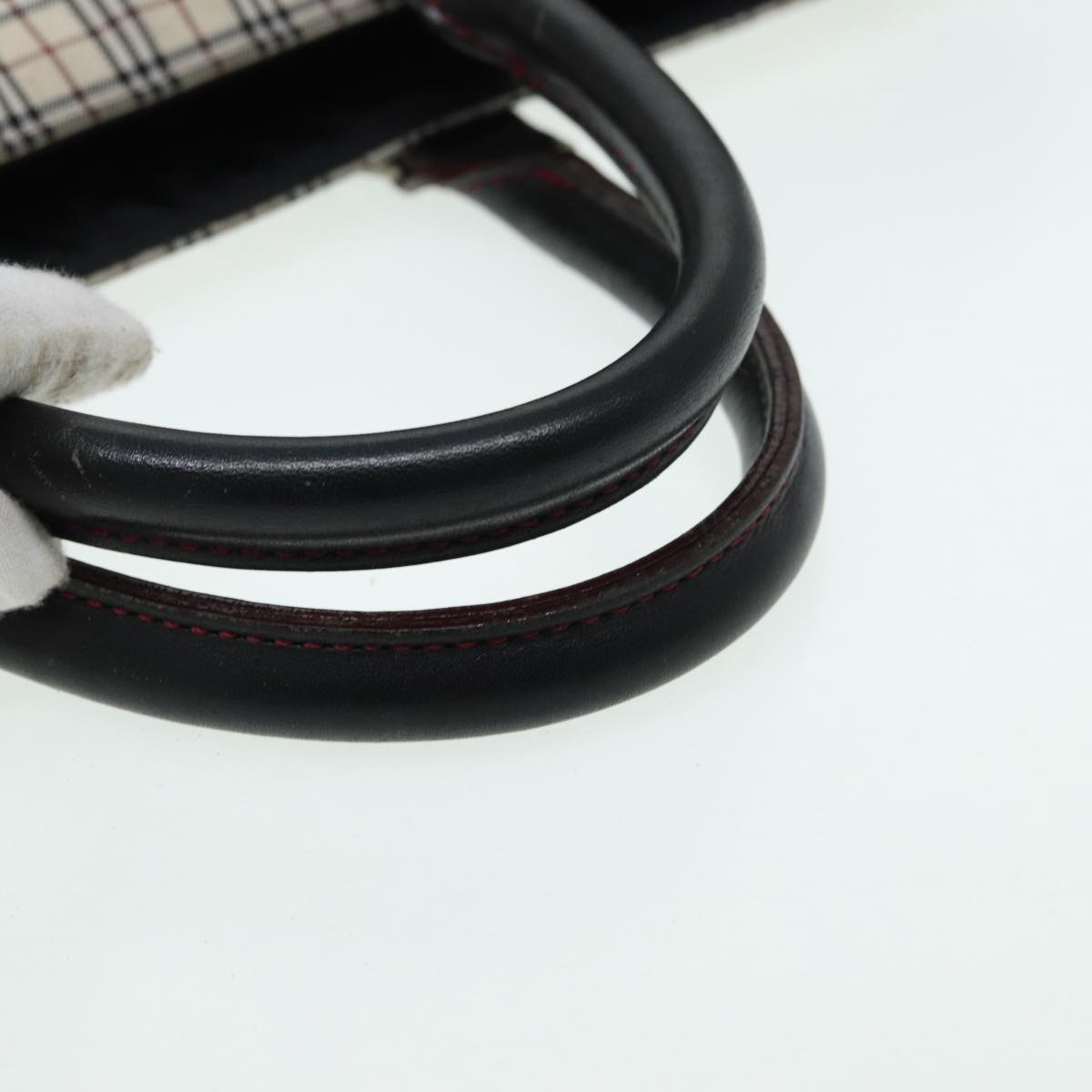 BURBERRY Nova Check Blue Label Hand Bag Nylon Beige Silver Auth bs16646