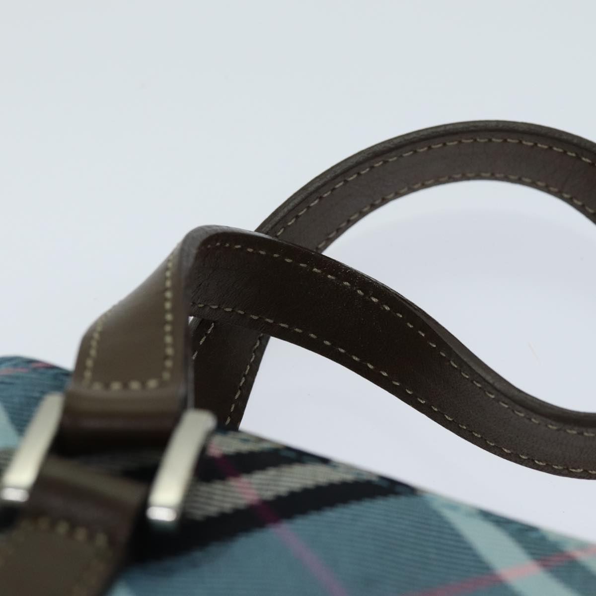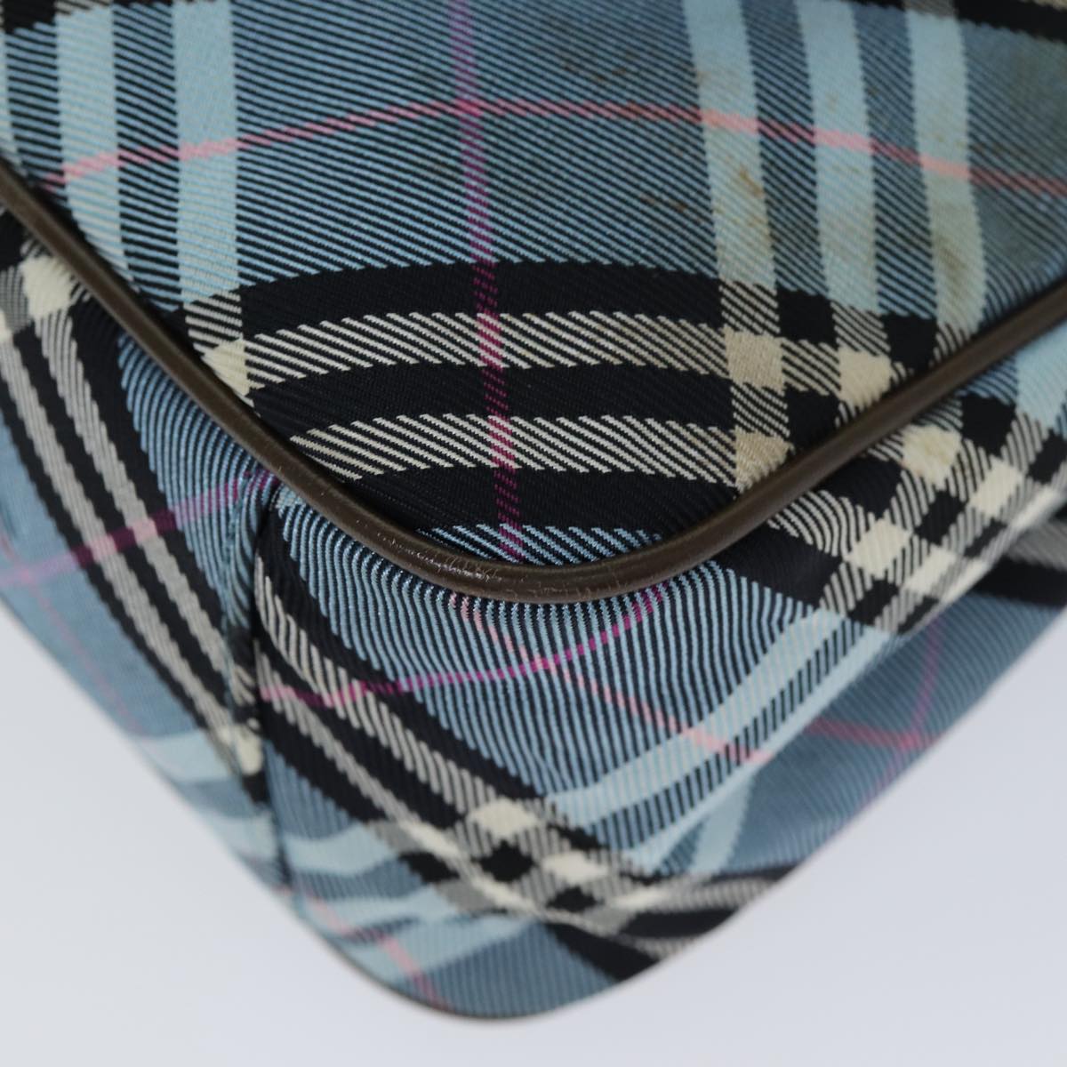 BURBERRY Nova Check Blue Label Hand Bag Nylon Light Blue Brown Auth 78854