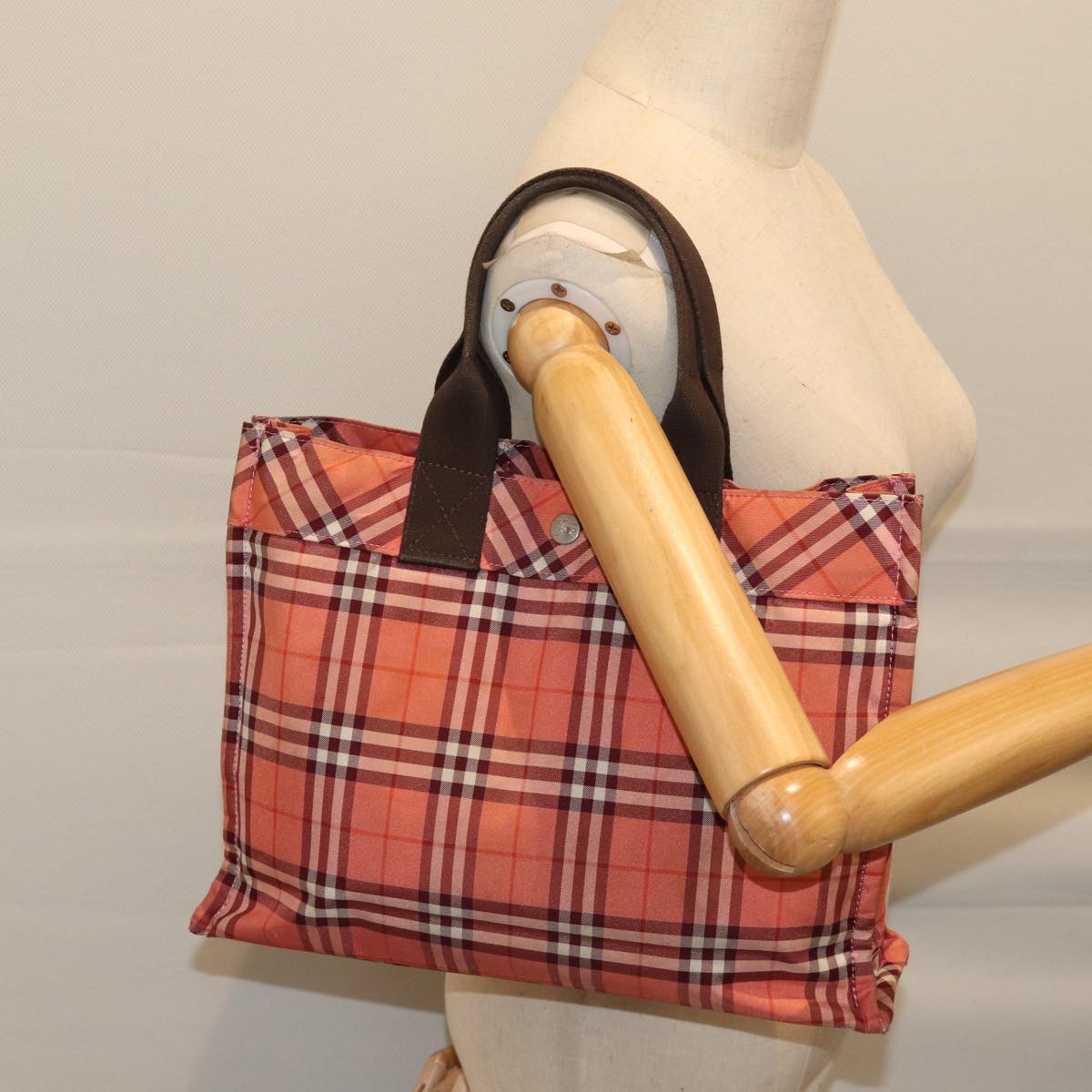BURBERRY Nova Check Blue Label Hand Bag Nylon Pink Auth kk216