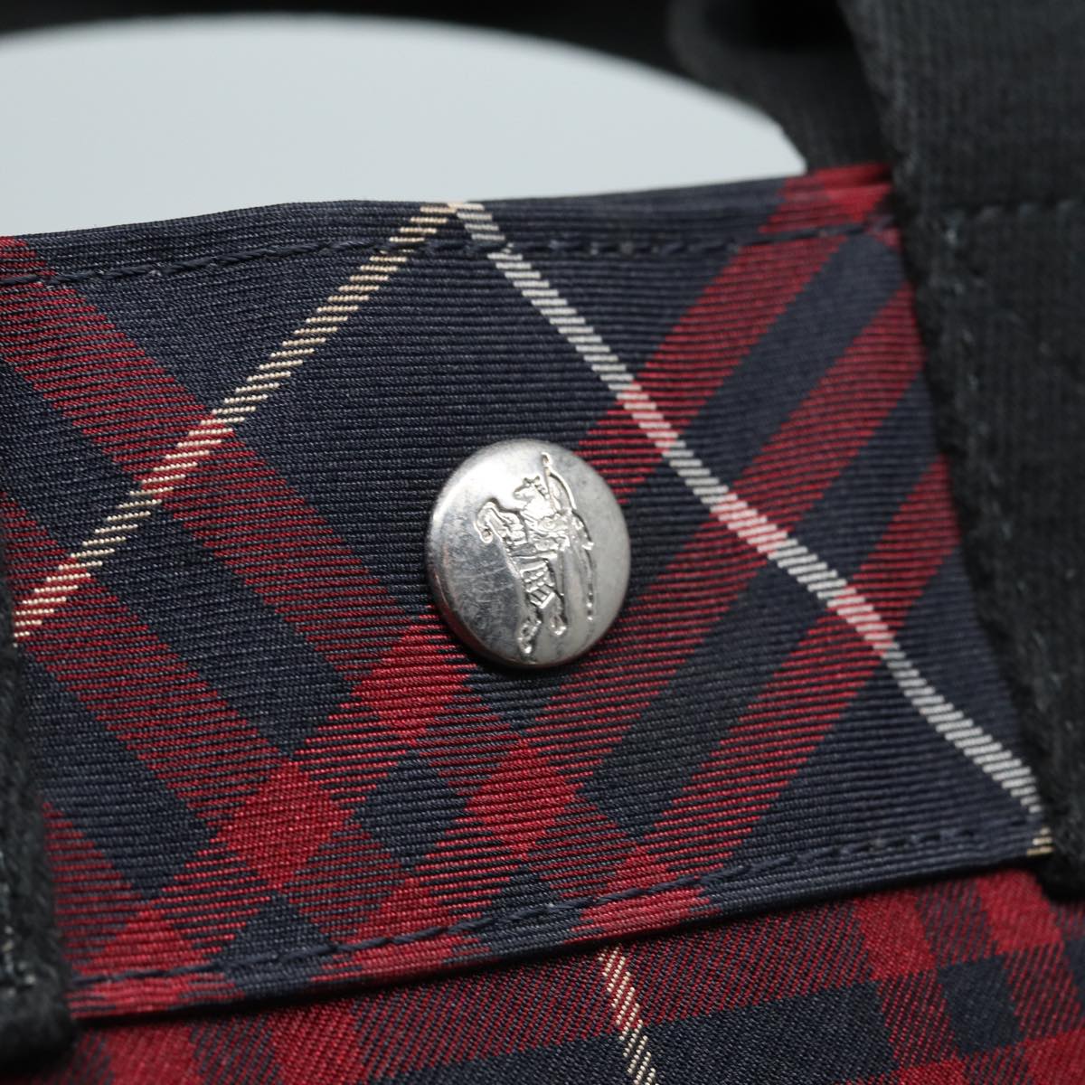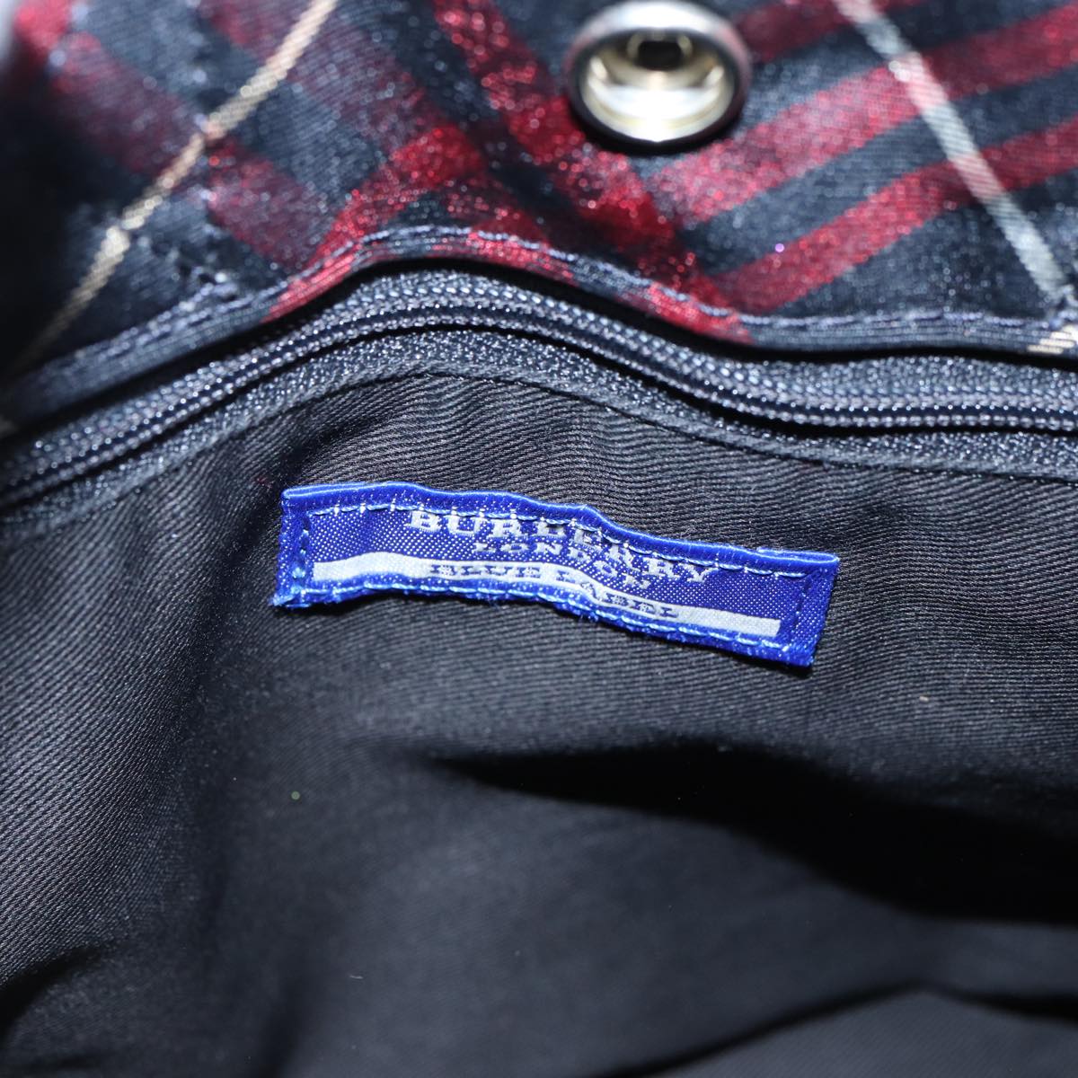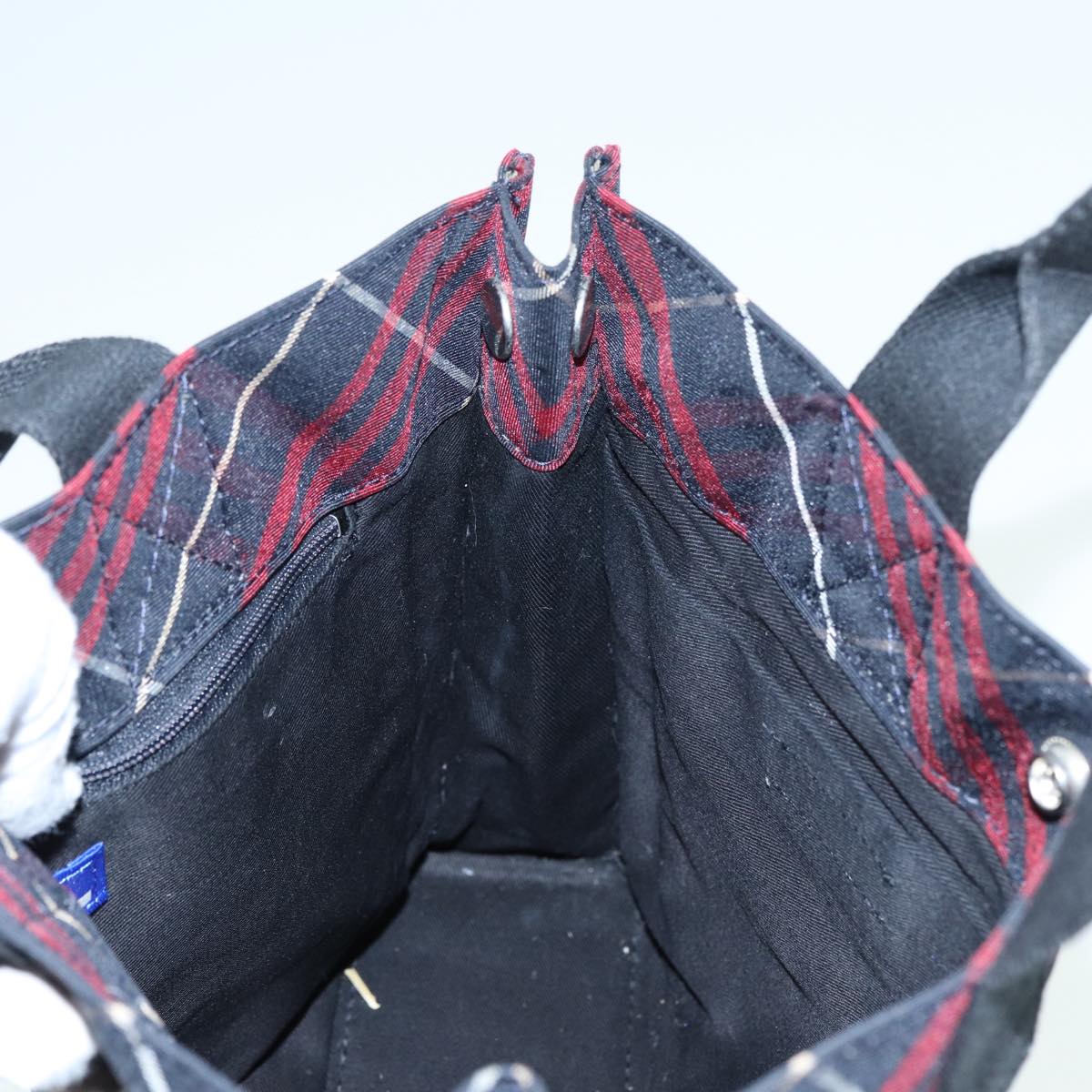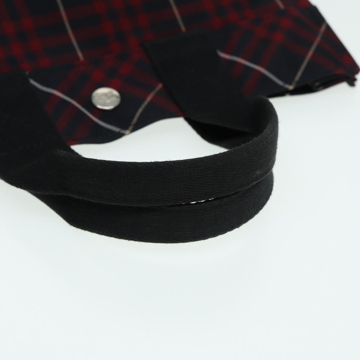 BURBERRY Nova Check Blue Label Hand Bag Nylon Red Auth hs1682