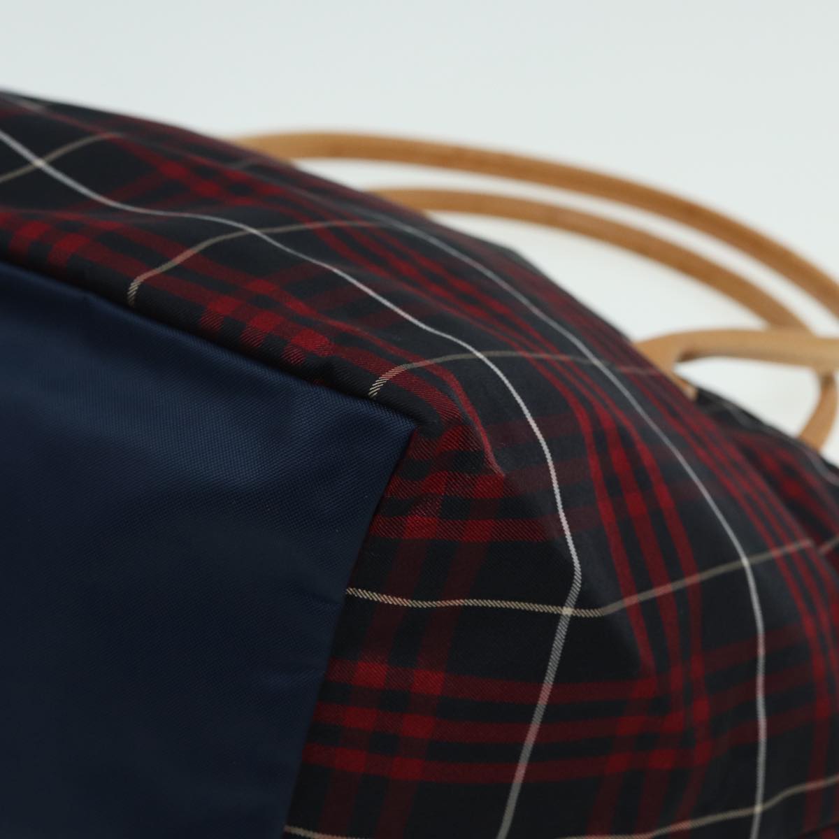 BURBERRY Nova Check Blue Label Hand Bag Nylon Red Navy Auth ti1865