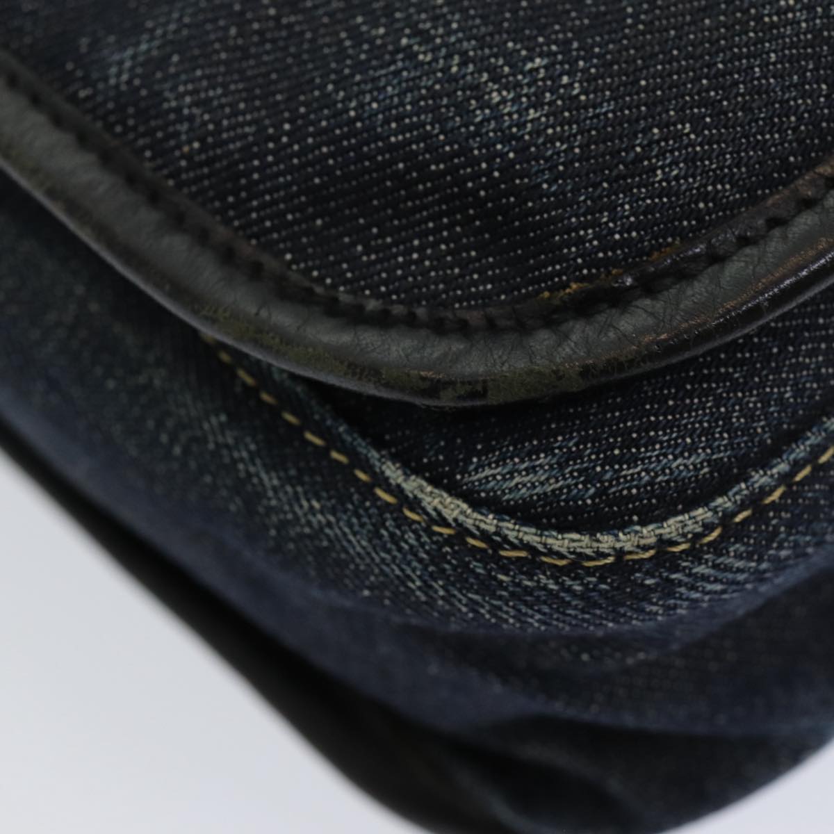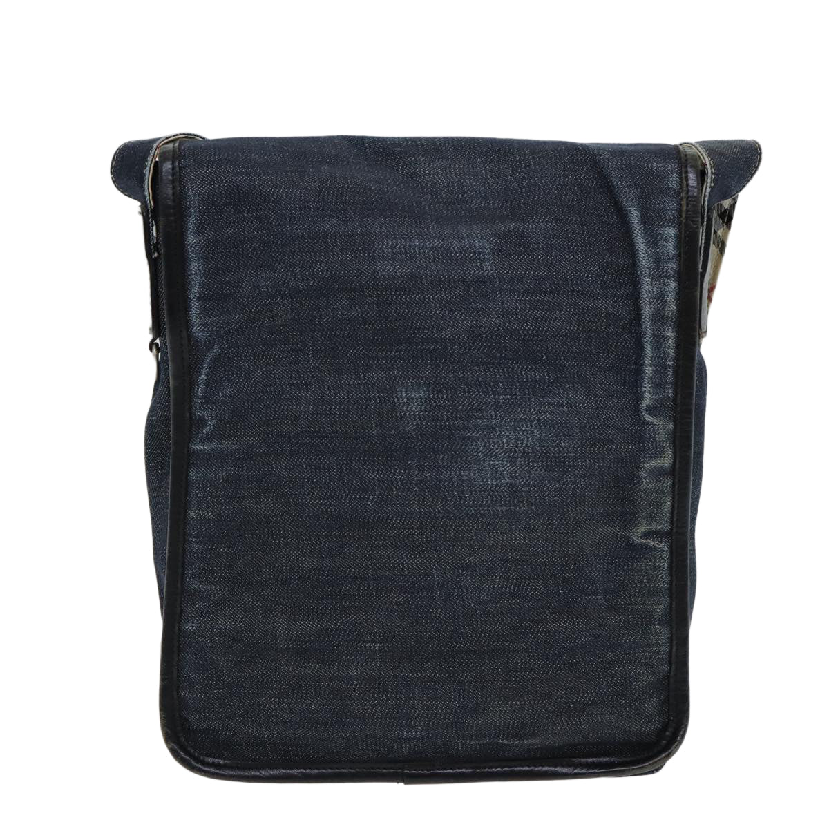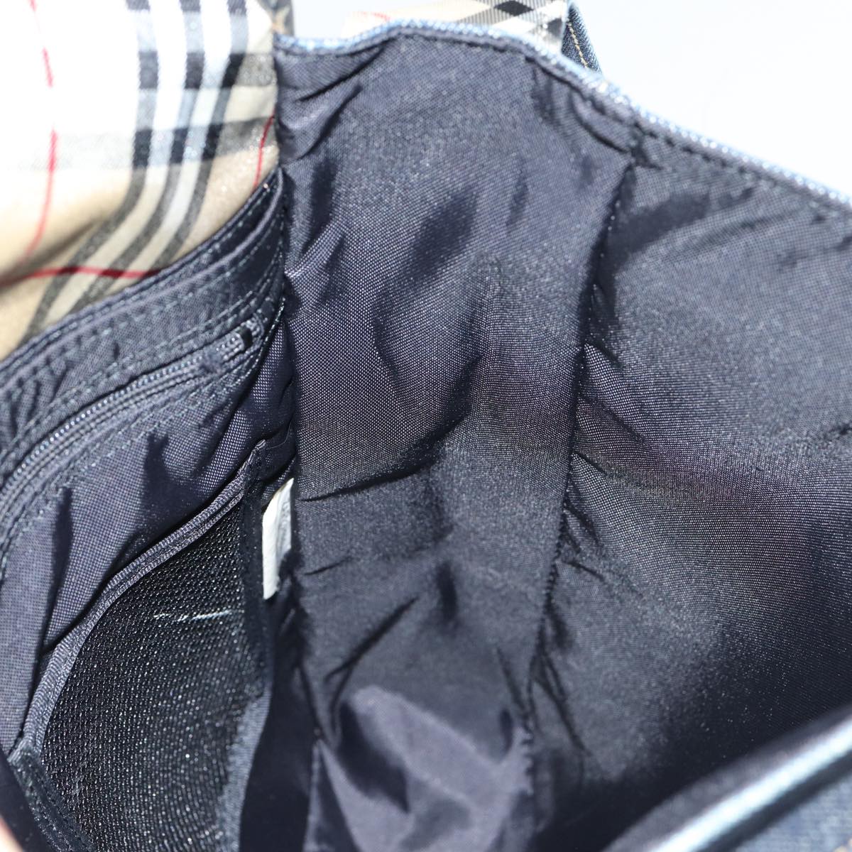 BURBERRY Nova Check Blue Label Shoulder Bag Denim Navy Beige Silver Auth bs16582