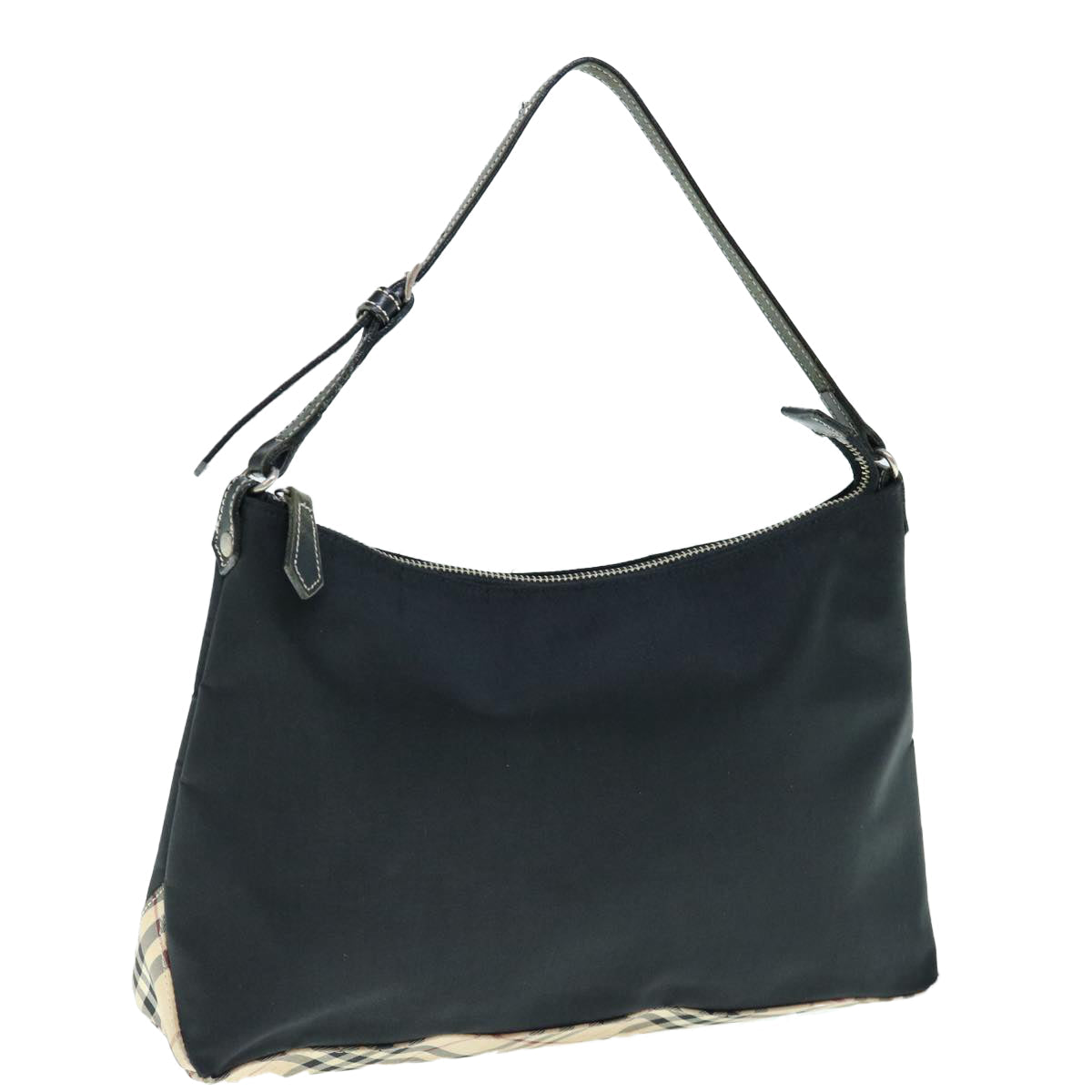 Burberry Nova Check Blue Label Shoulder Bag Nylon Black Beige Auth bs11547