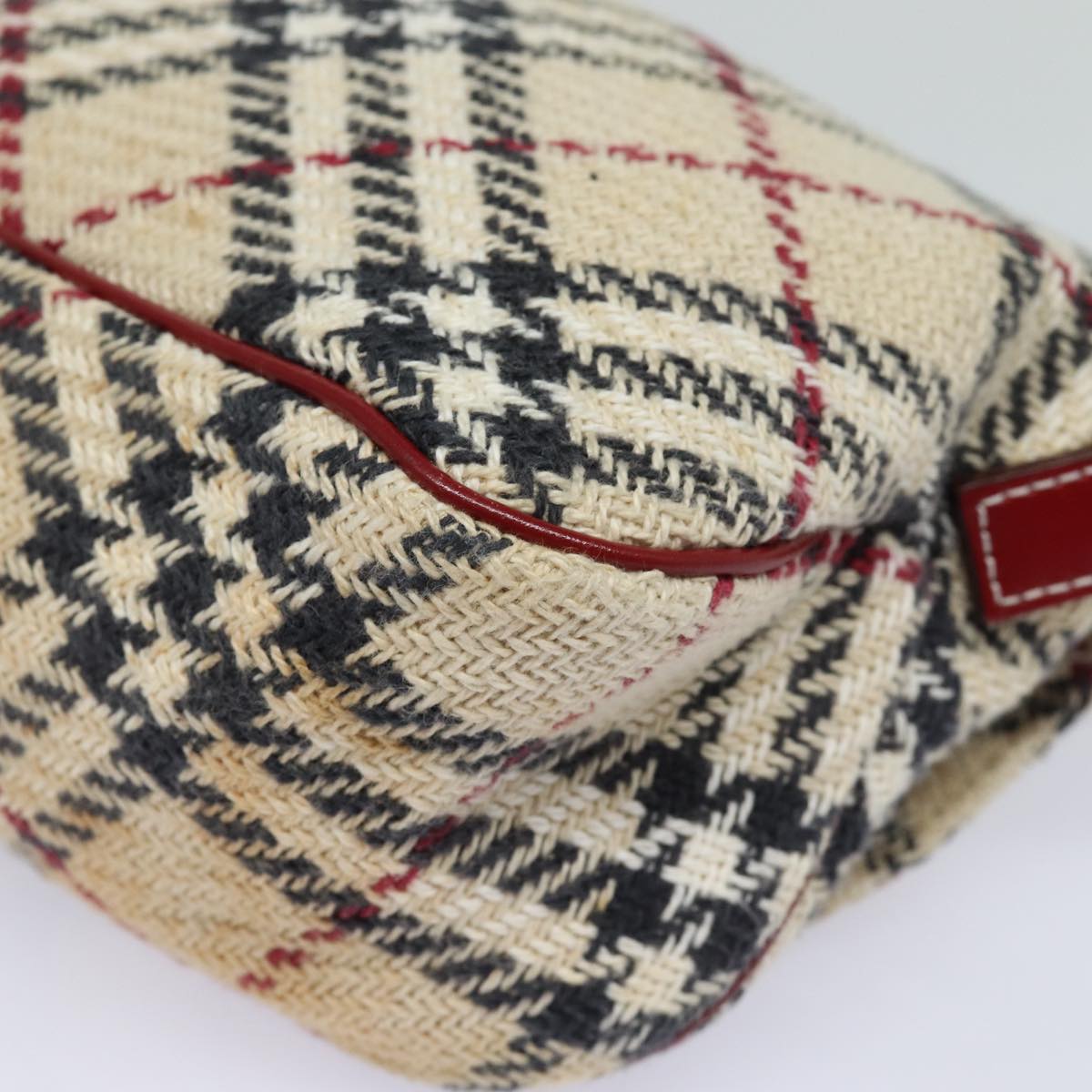 BURBERRY Nova Check Blue Label Shoulder Bag Wool Beige Silver Auth 86336