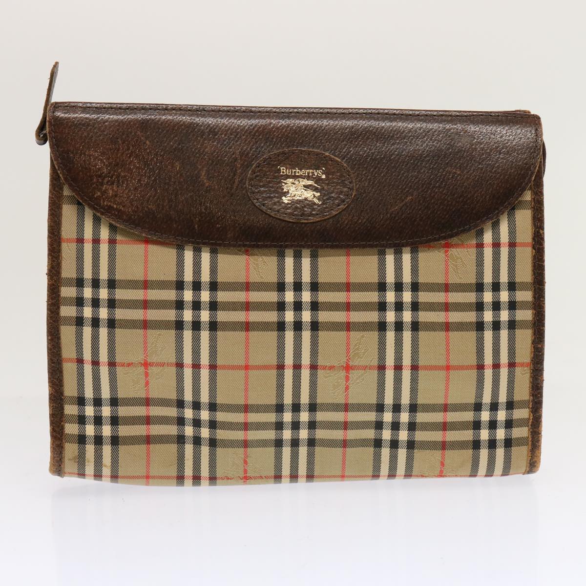 Burberry Nova Check Clutch Bag Canvas 2Set Beige Brown Auth 68349