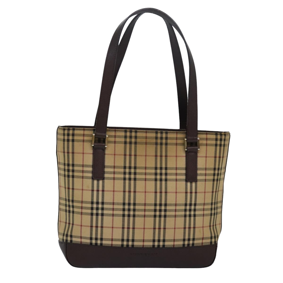 Burberry Nova Check Hand Bag Canvas Beige Auth 83214