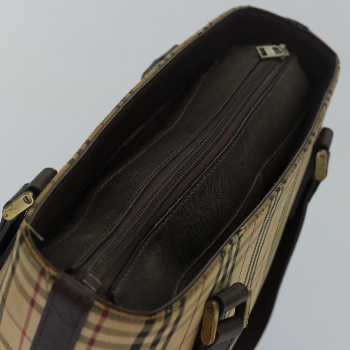 BURBERRY Nova Check Hand Bag Canvas Beige Auth 83214