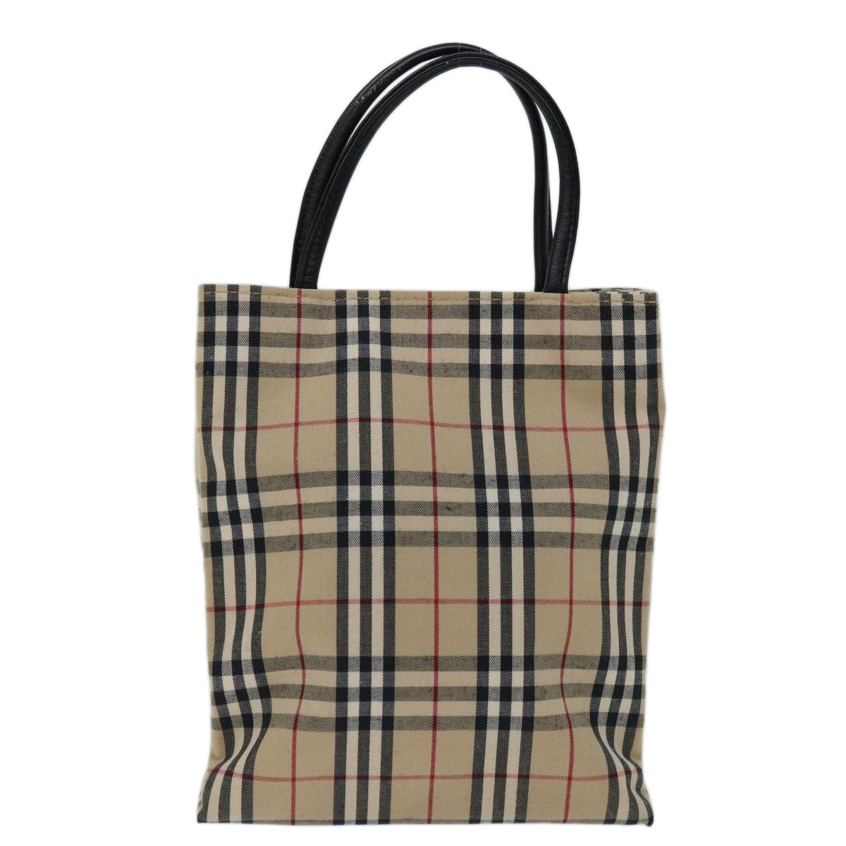Burberry Nova Check Hand Bag Canvas Beige Auth bs12605