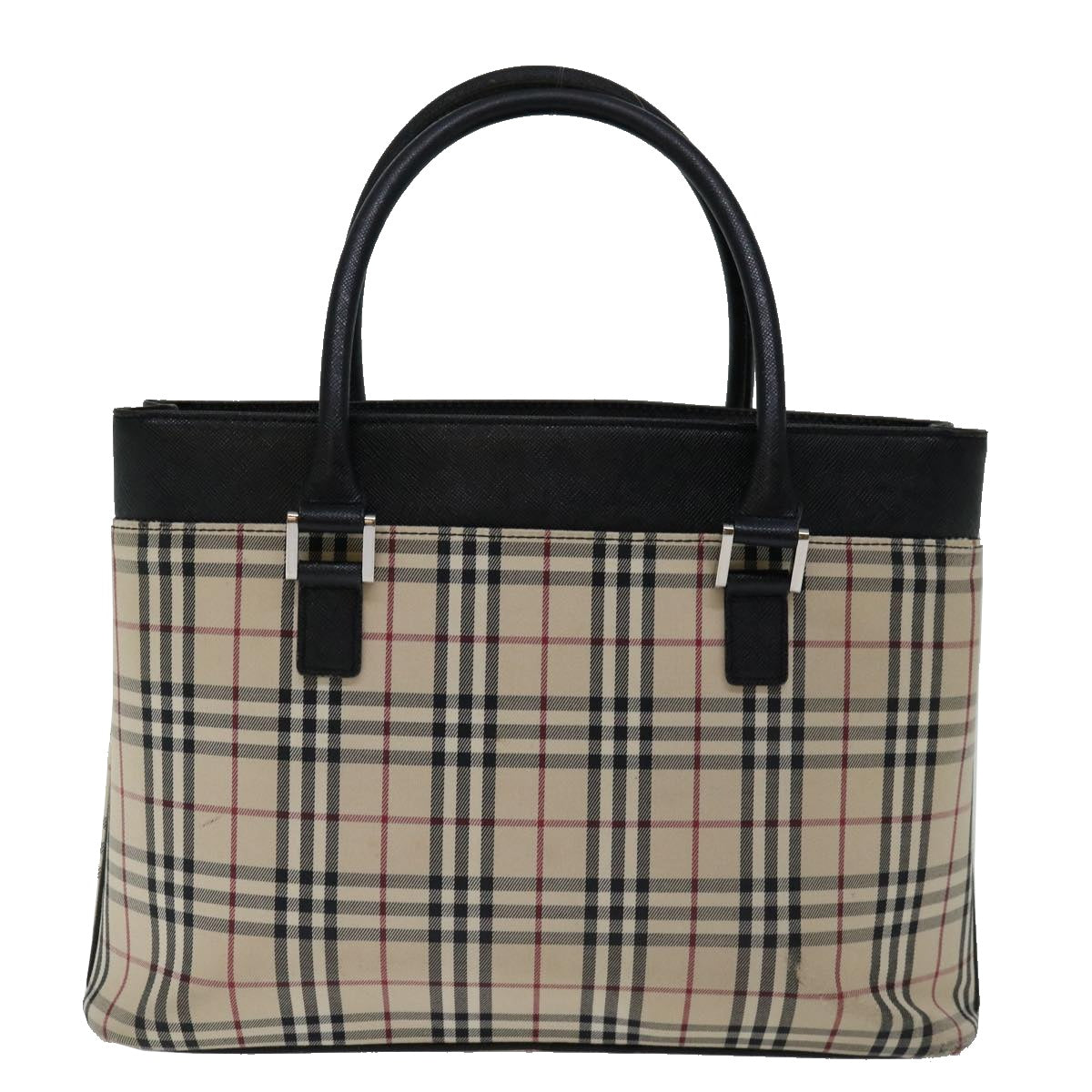 BURBERRY Nova Check Hand Bag Canvas Beige Brown Auth mr059