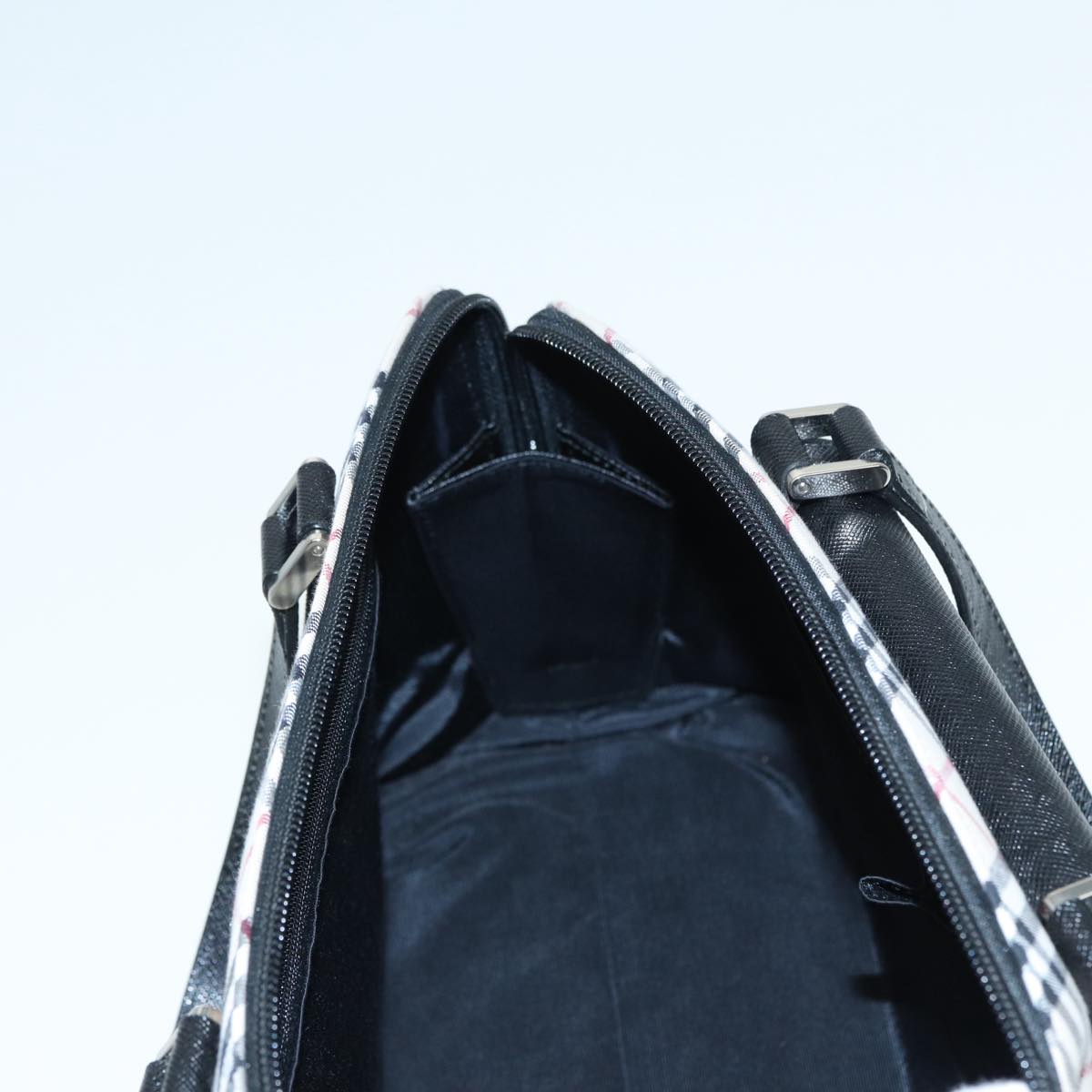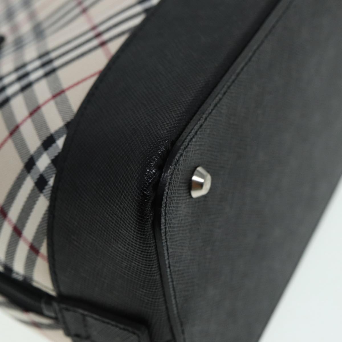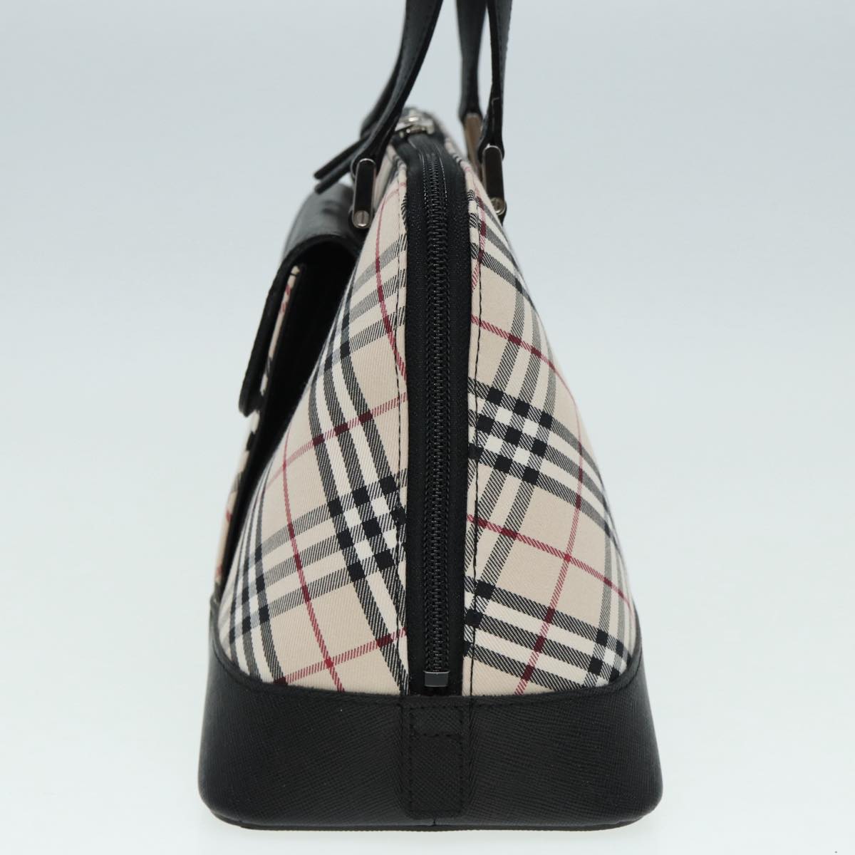 BURBERRY Nova Check Hand Bag Canvas Leather Beige Black Silver Auth am6793