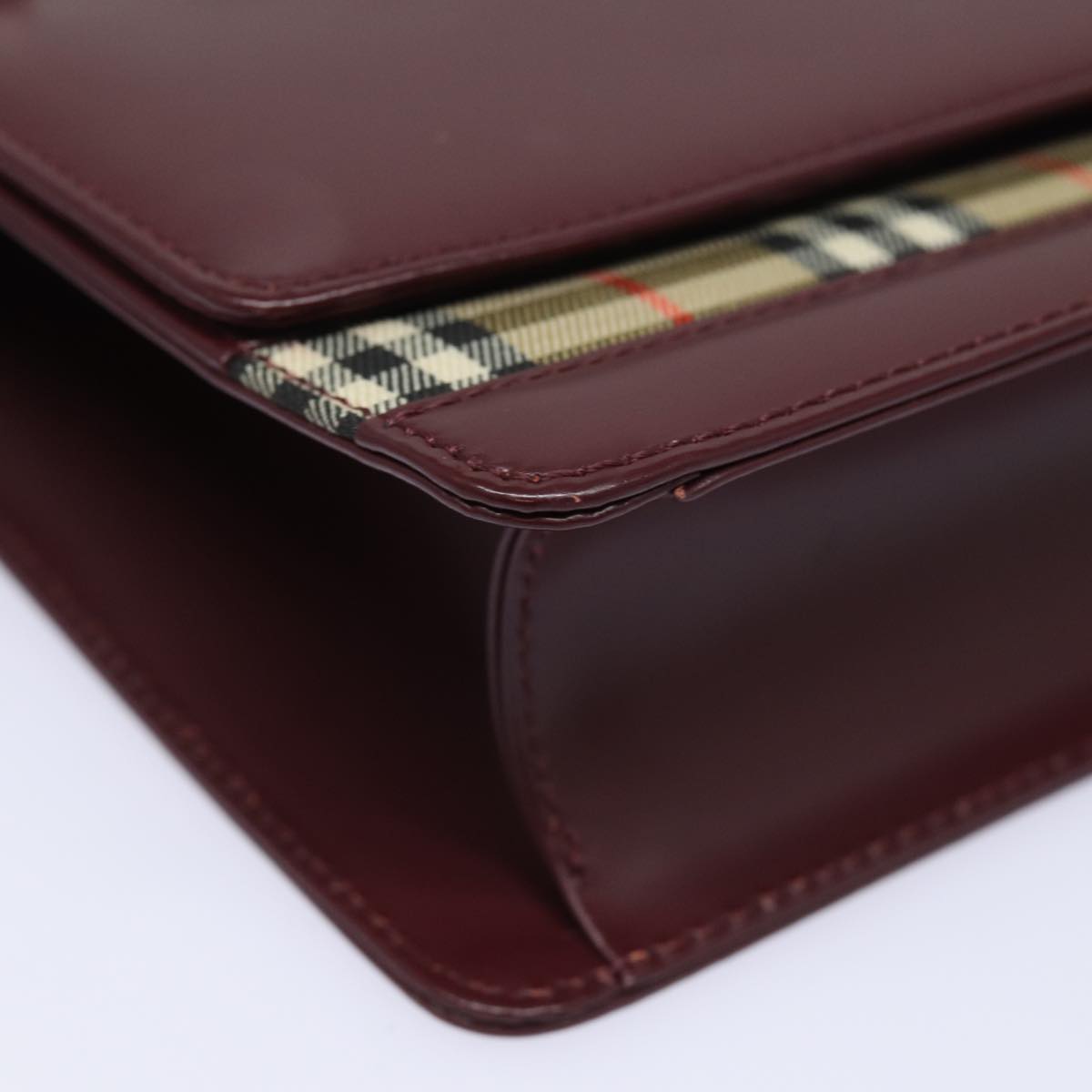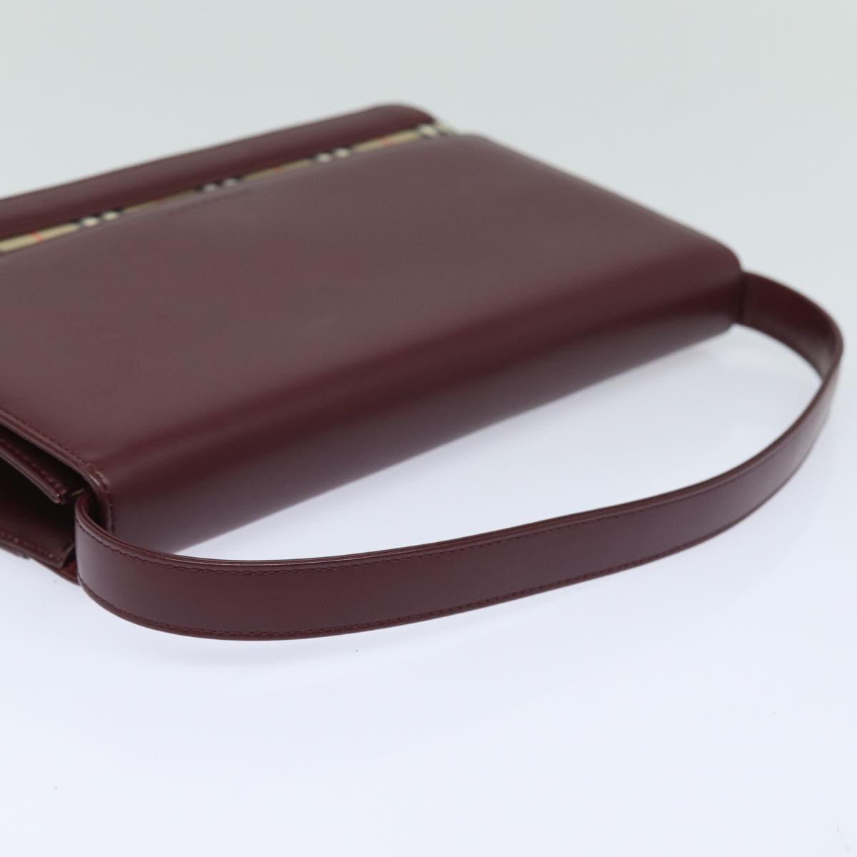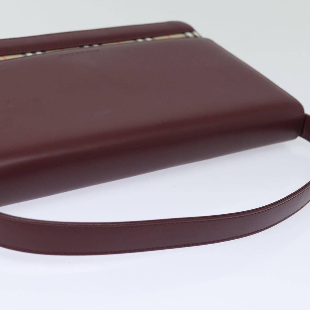 BURBERRY Nova Check Hand Bag Leather Red Auth yk13546