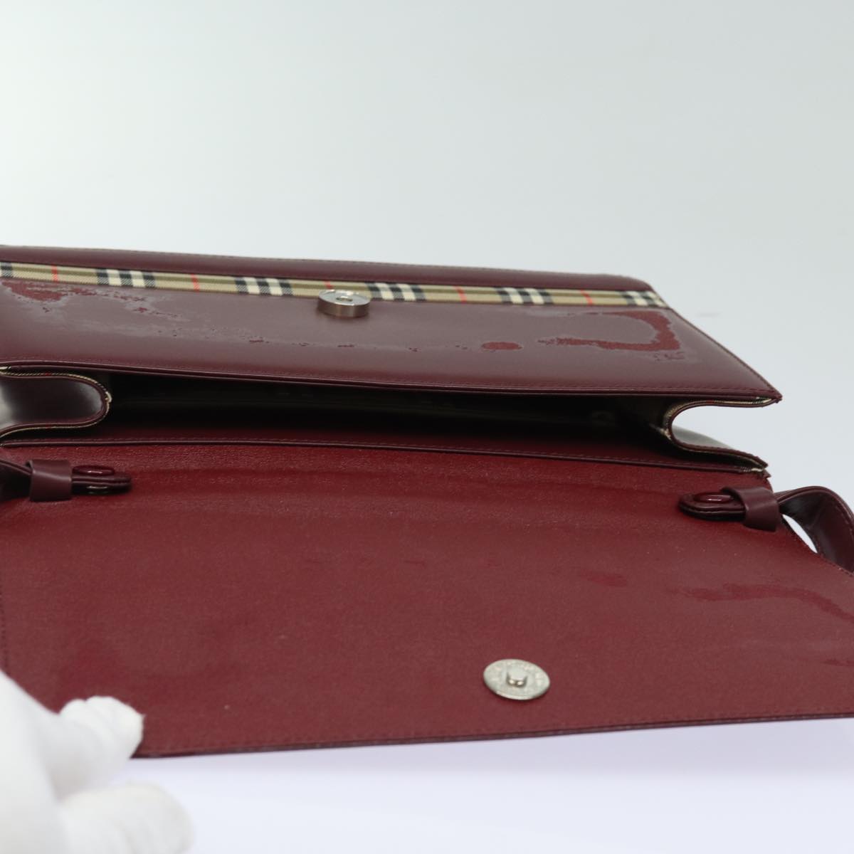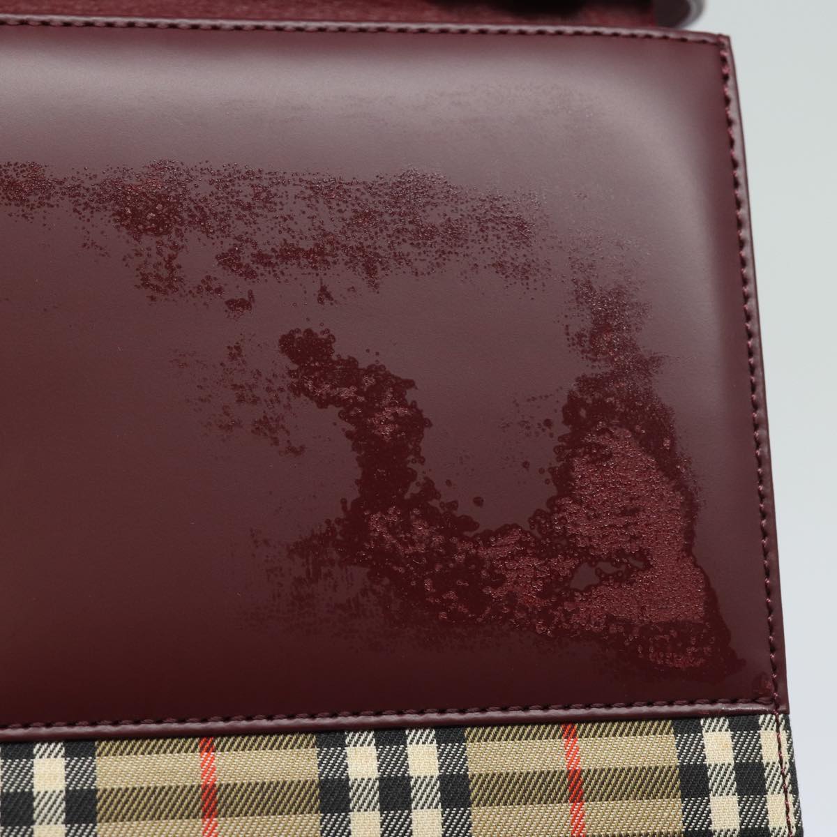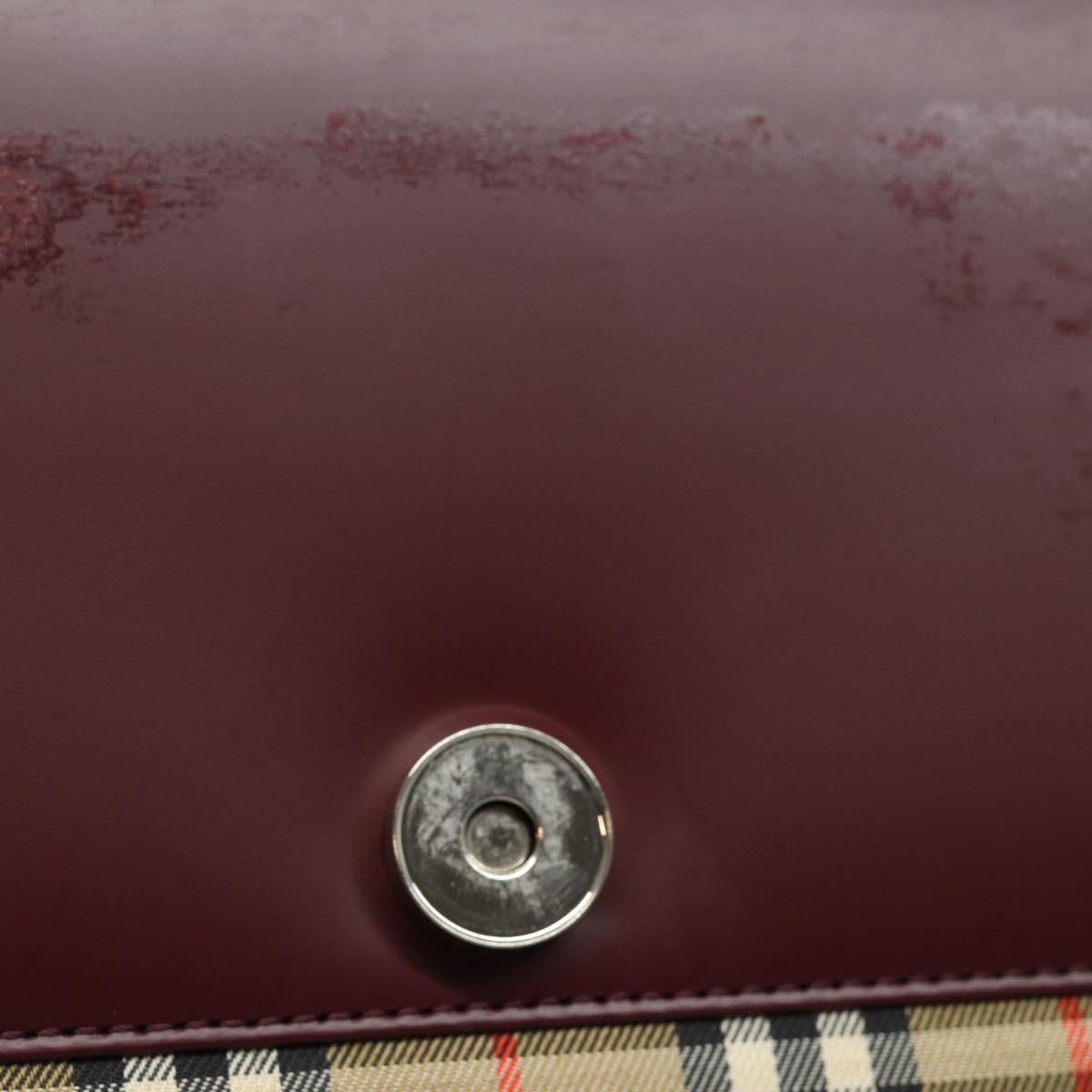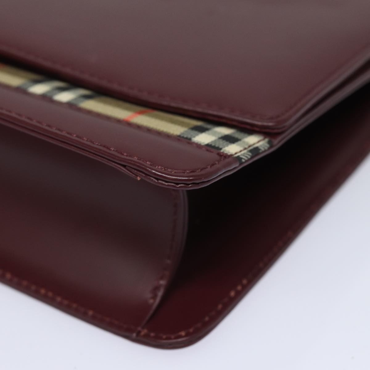 BURBERRY Nova Check Hand Bag Leather Red Auth yk13546