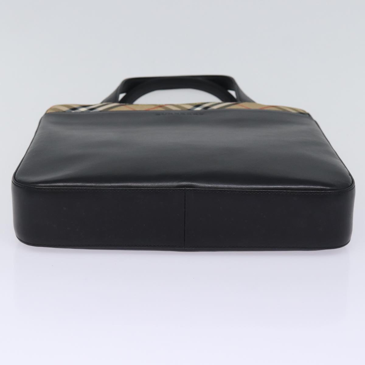 BURBERRY Nova Check Hand Bag Nylon Leather Beige Black Auth 78540