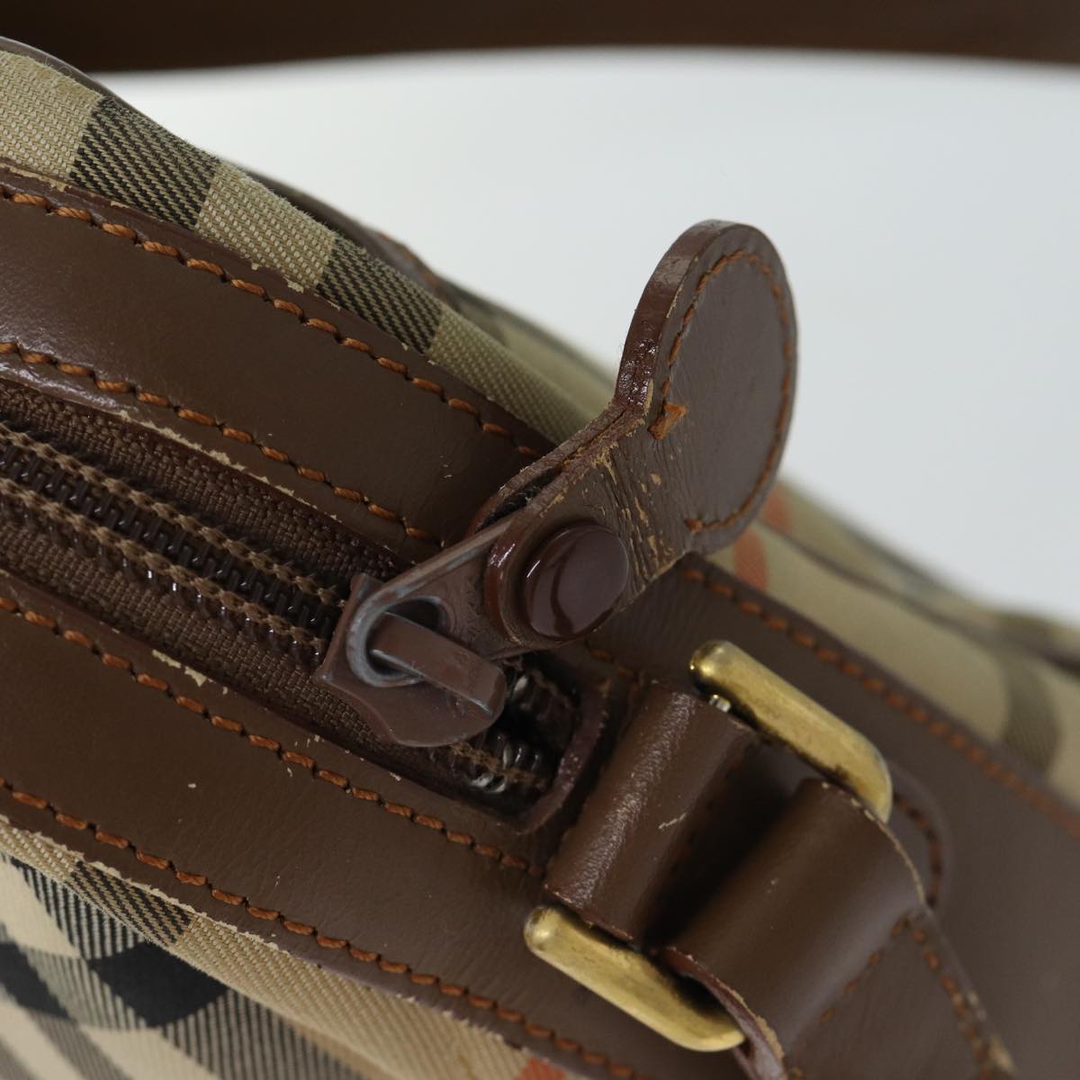 Burberry Nova Check Shoulder Bag Canvas Beige Auth 72502