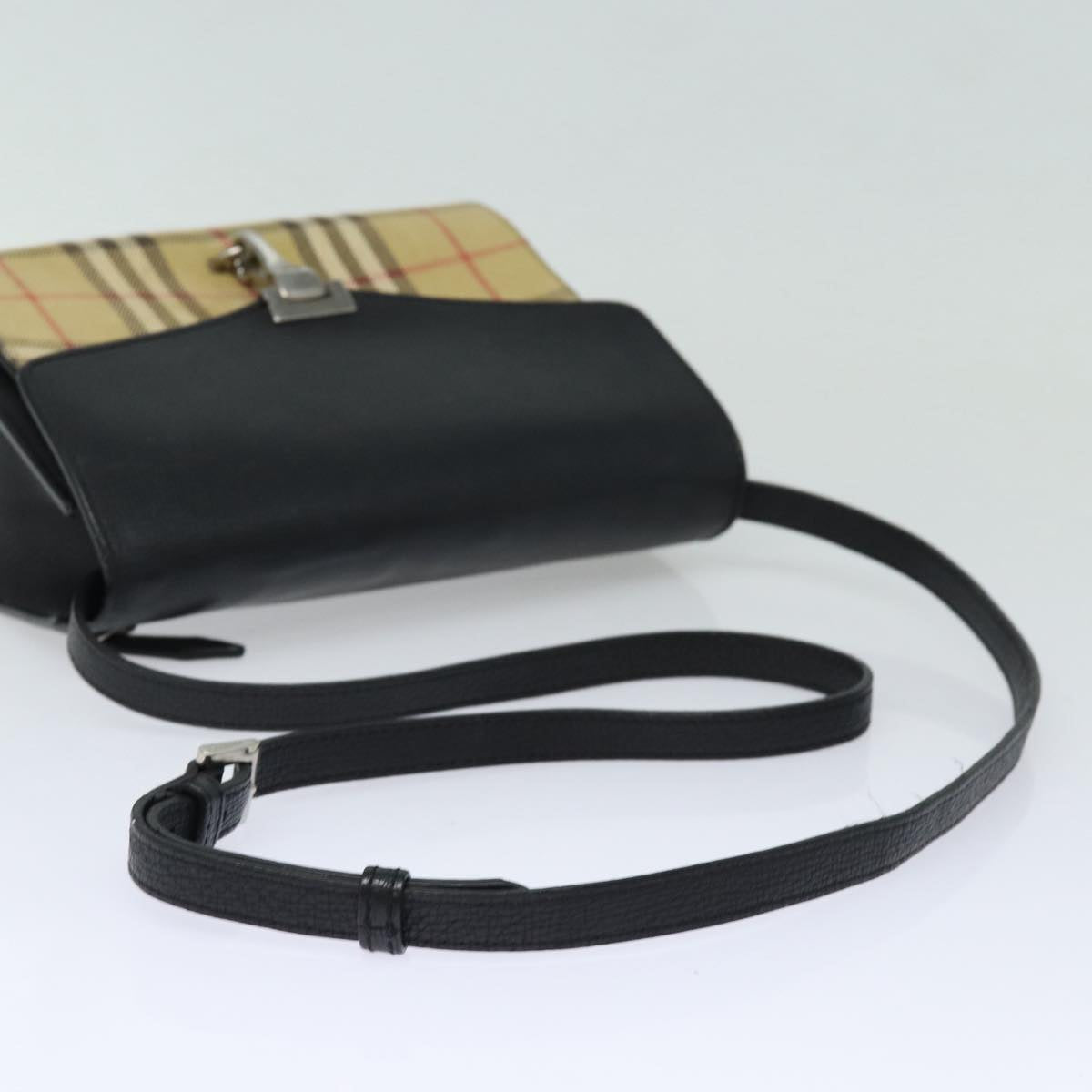 BURBERRY Nova Check Shoulder Bag Canvas Leather Beige Black Auth bs16405