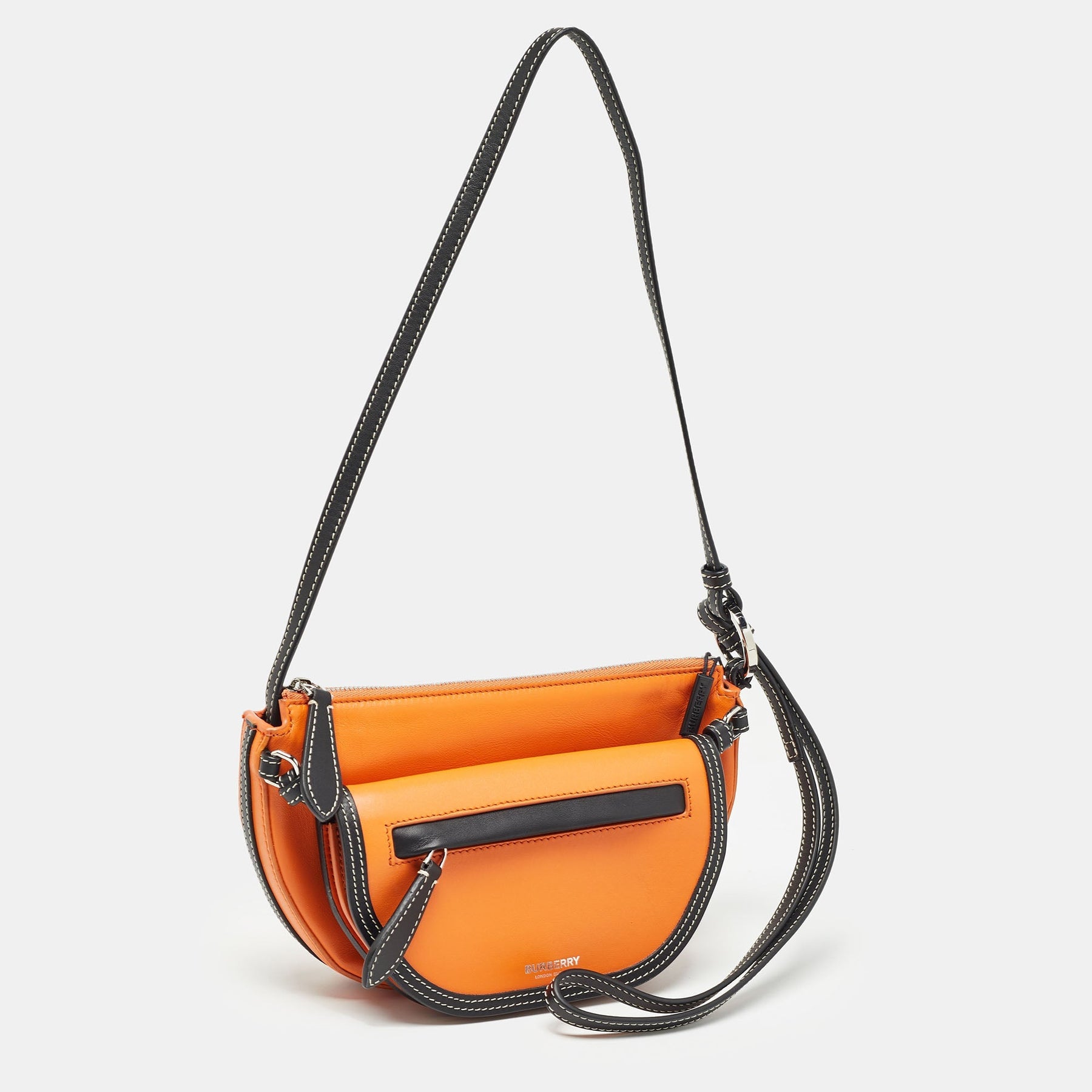 BURBERRY Orange/Black Leather Mini Double Olympia Bag