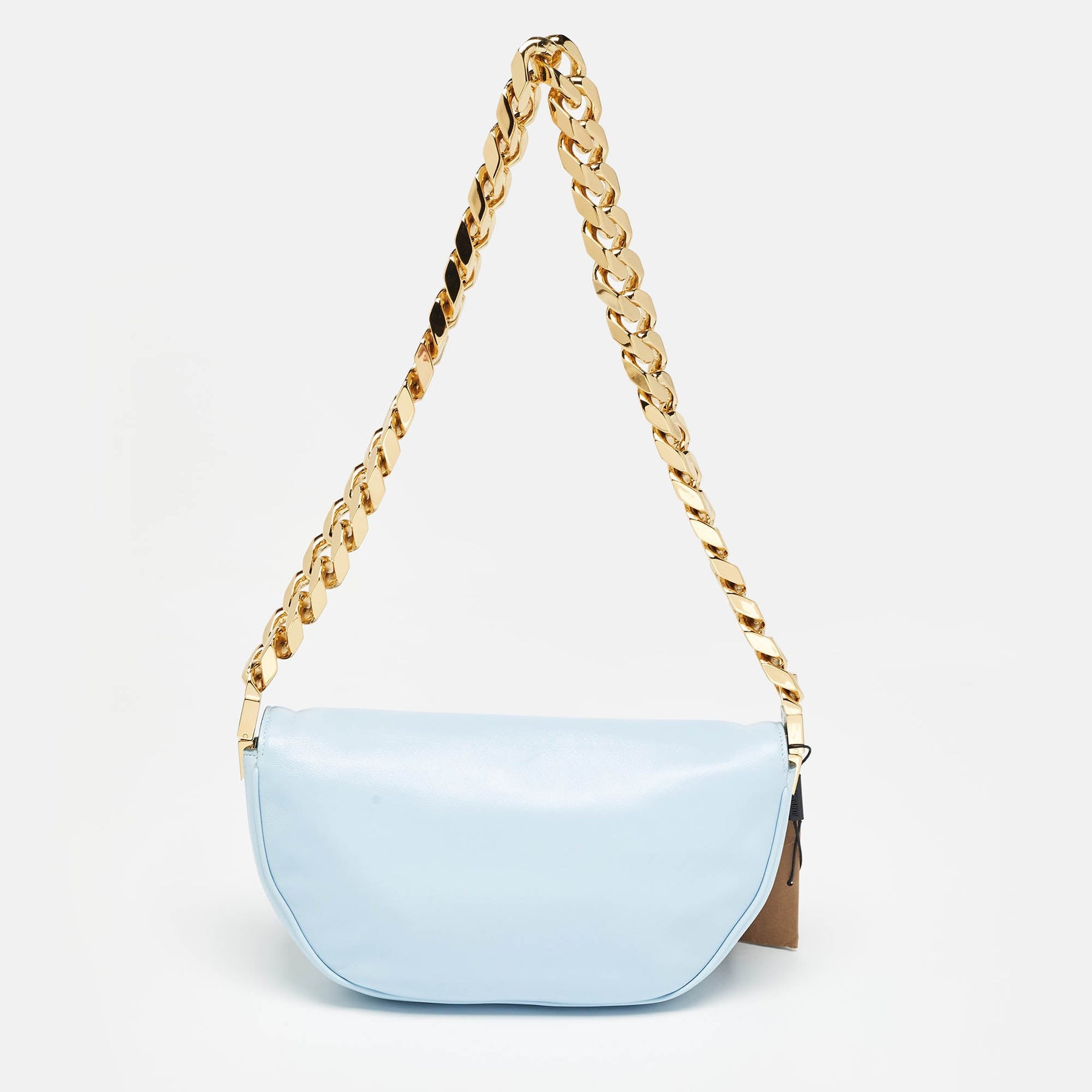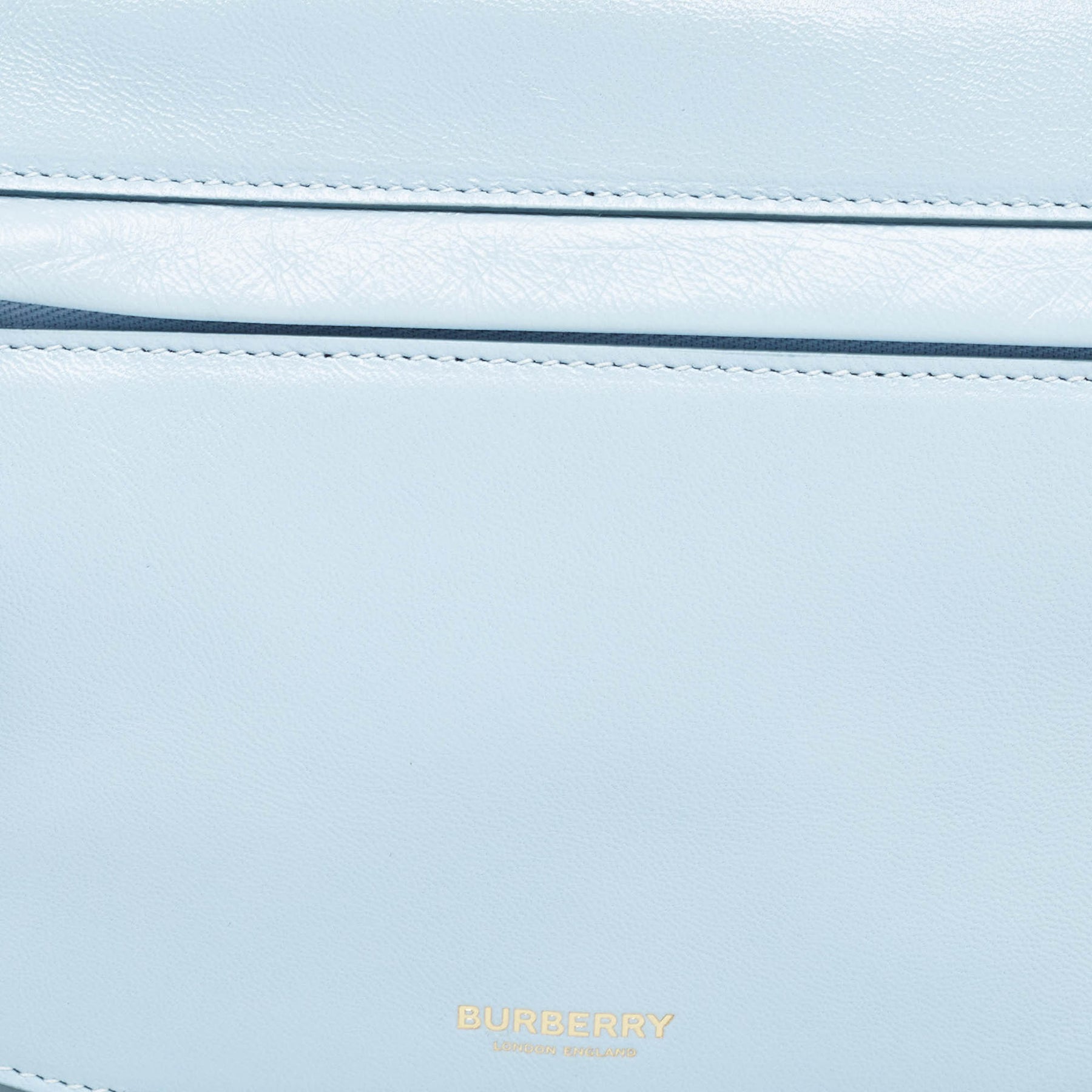 Indulge in luxury with this Burberry pale blue bag. Meticulously crafted from premium materials, it combines exquisite design, impeccable craftsmanship, and timeless elegance. Elevate your style with this fashion accessory.
