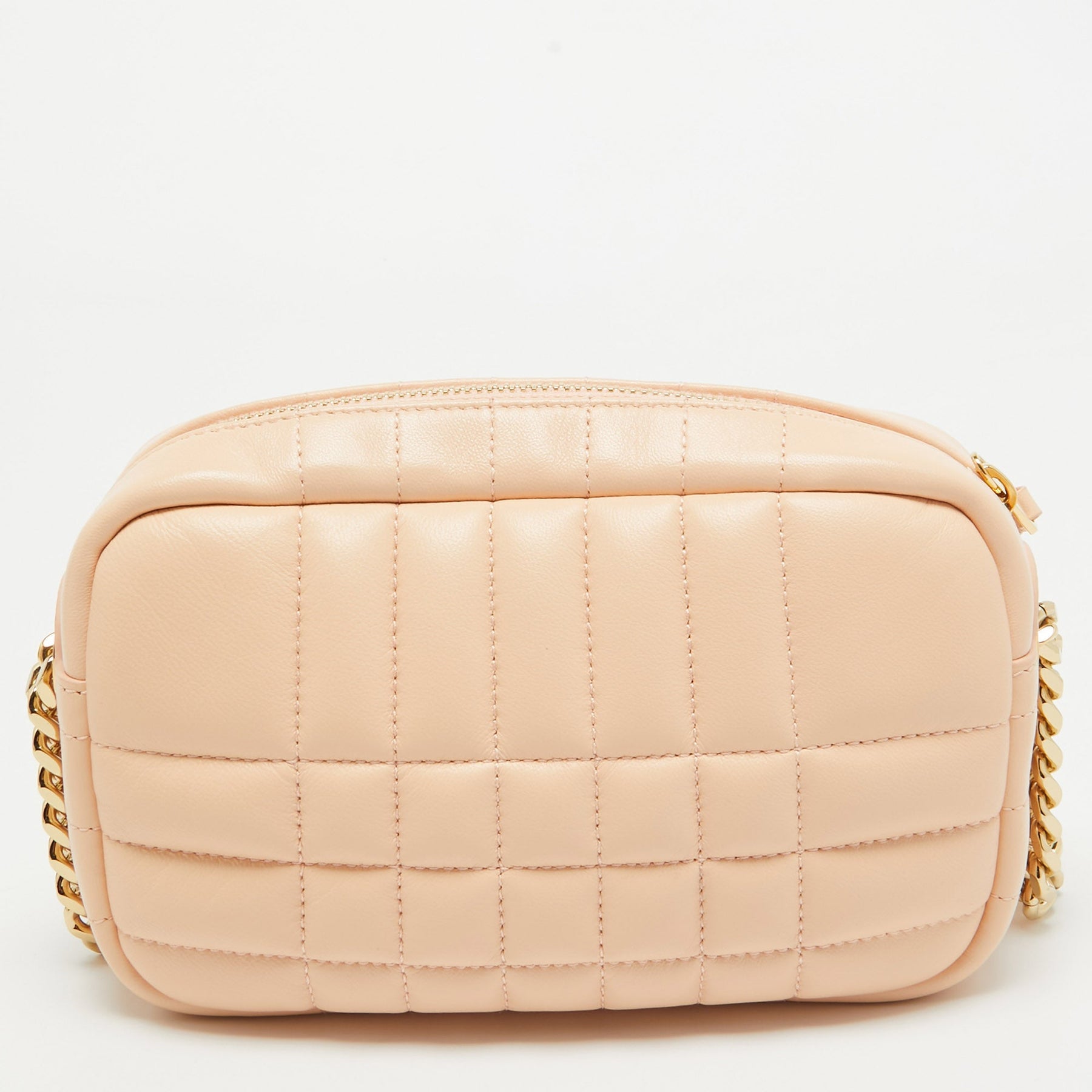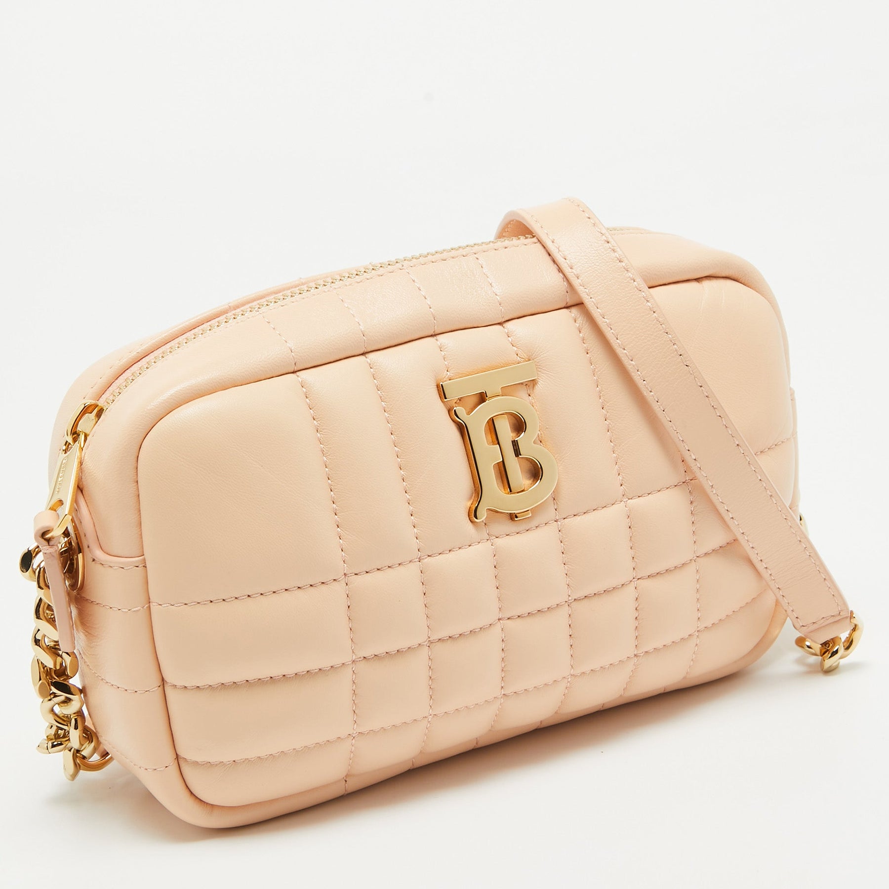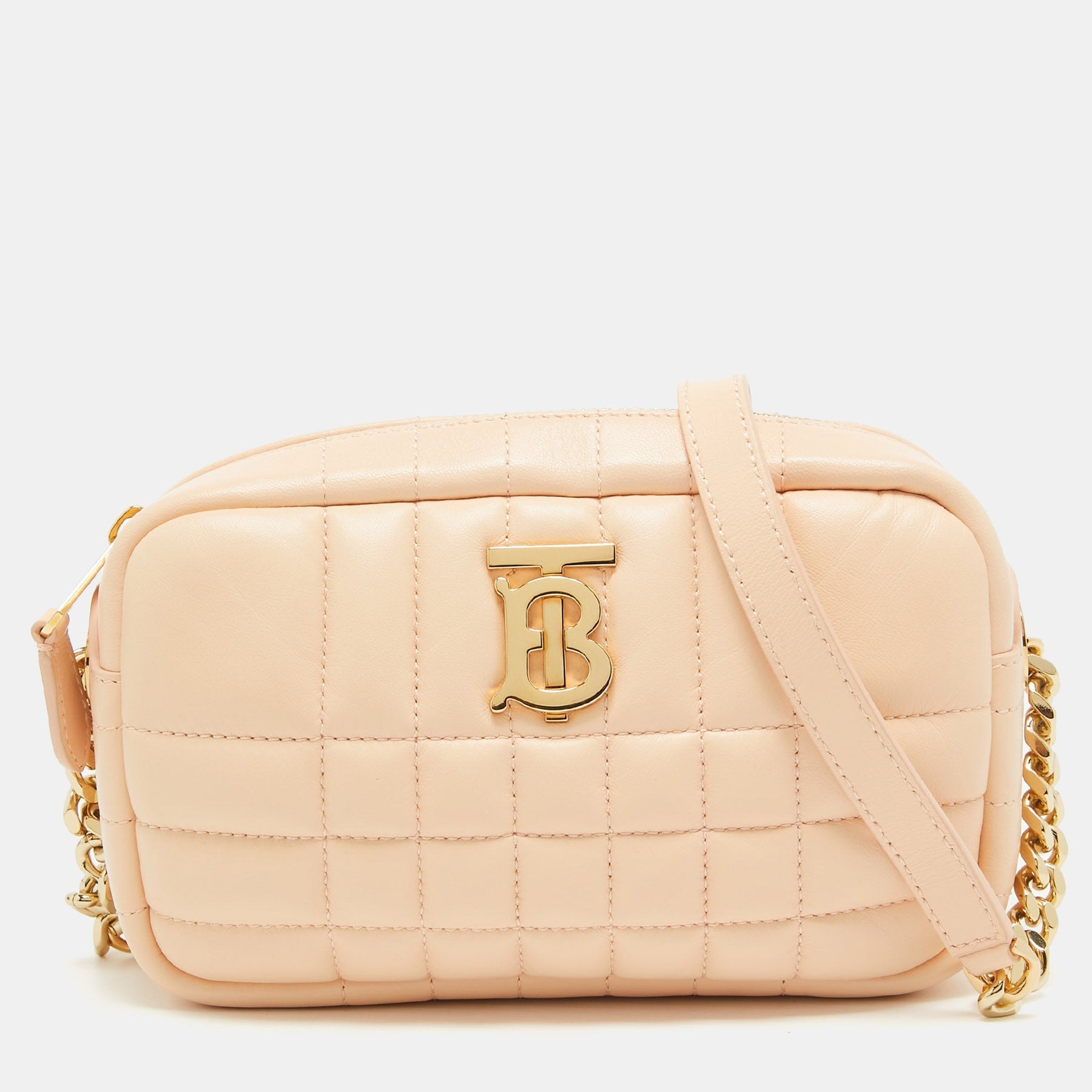 BURBERRY Peach Pink Quilted Leather Mini Lola Camera Bag