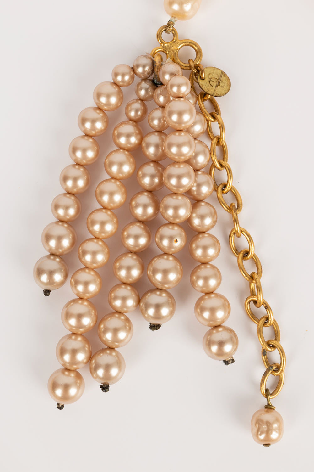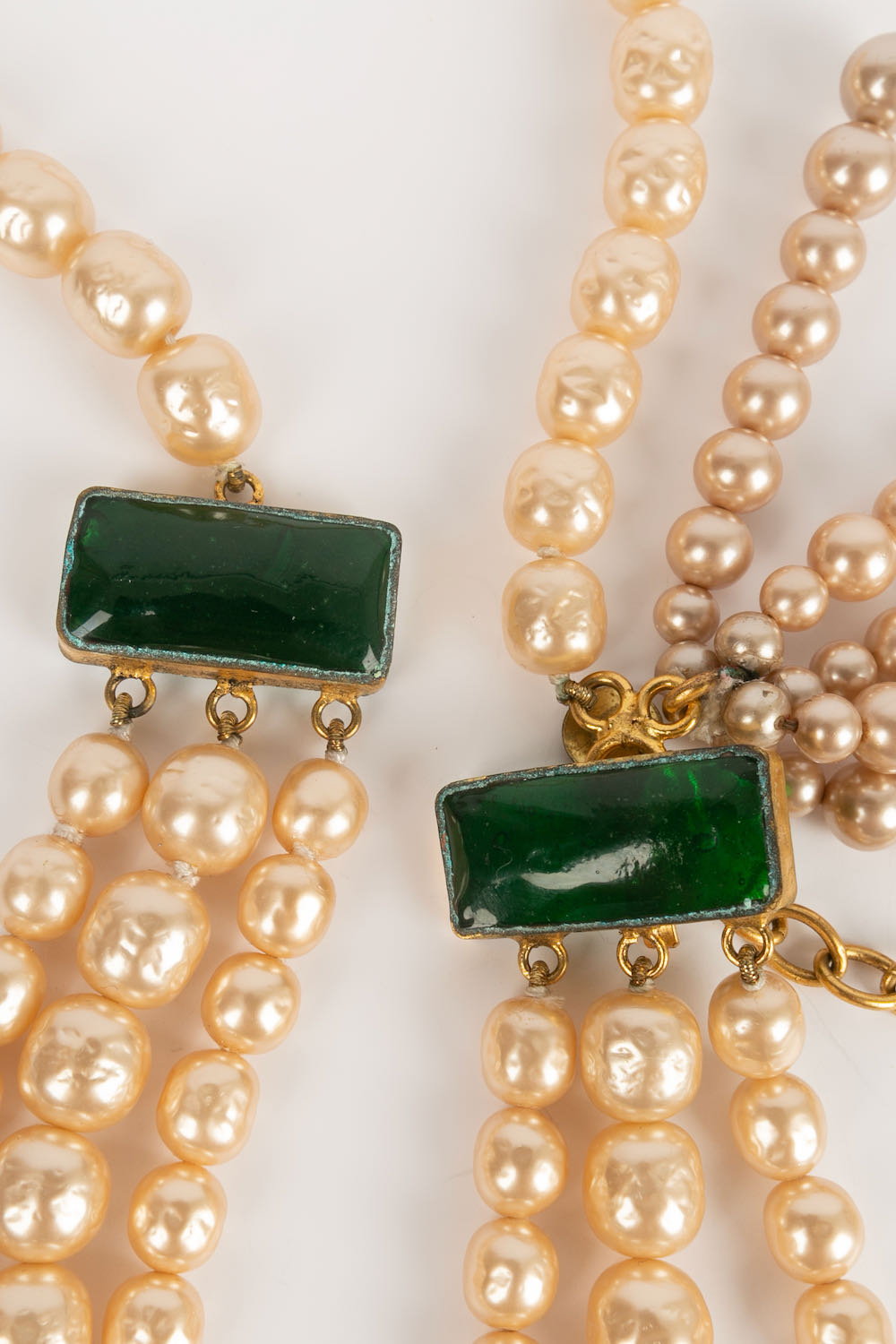 CHANEL -Ceinture de perles nacrées et pâte de verre verte.