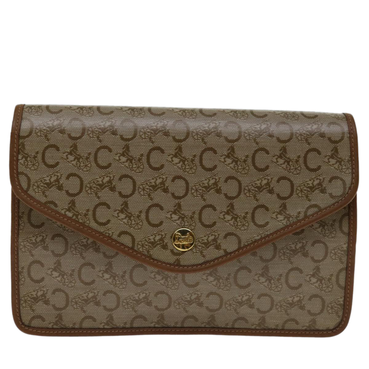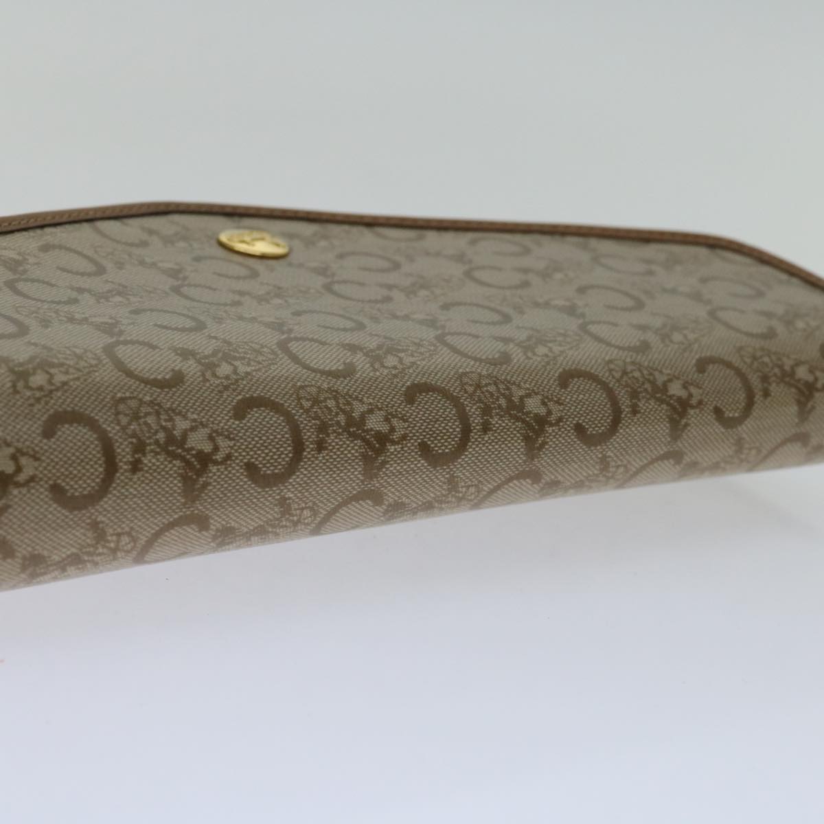 CELINE C Macadam Canvas Clutch Bag Beige Auth bs12767