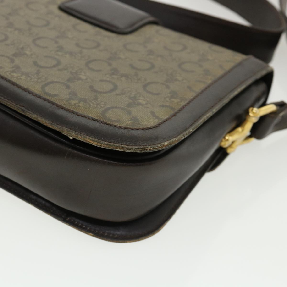 Celine C Macadam Canvas Gold Horse Carriage Shoulder Bag Brown tb272