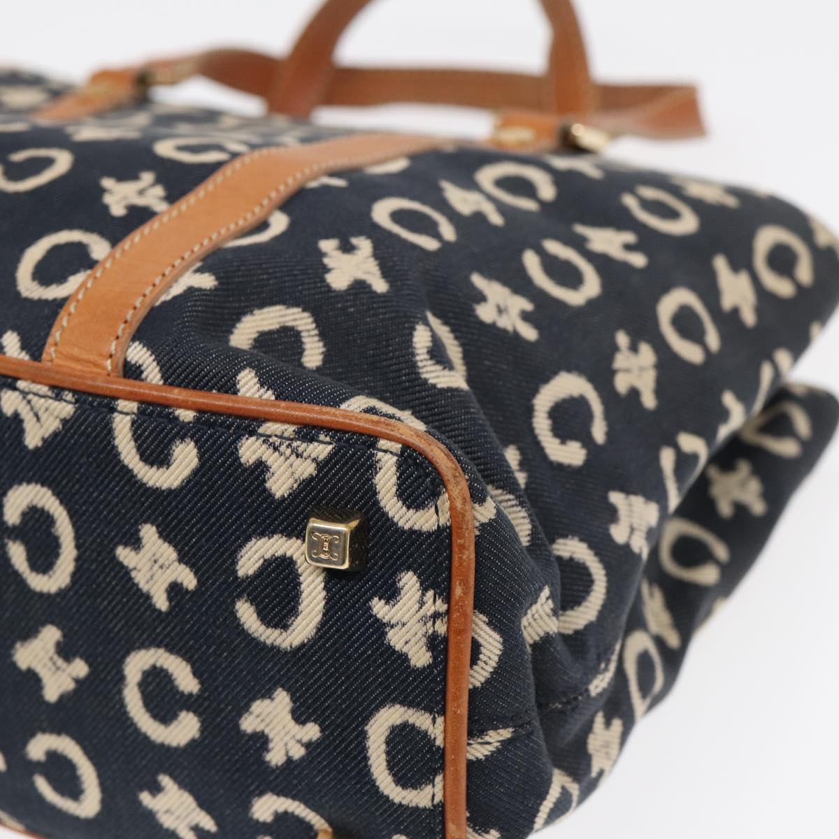 CELINE C Macadam Canvas Hand Bag Navy Auth bs16852