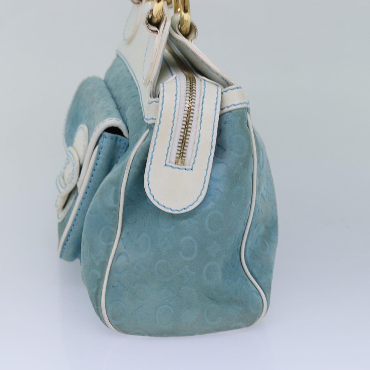 Celine C Macadam Canvas Hand Bag Suede Light Blue Auth 81050