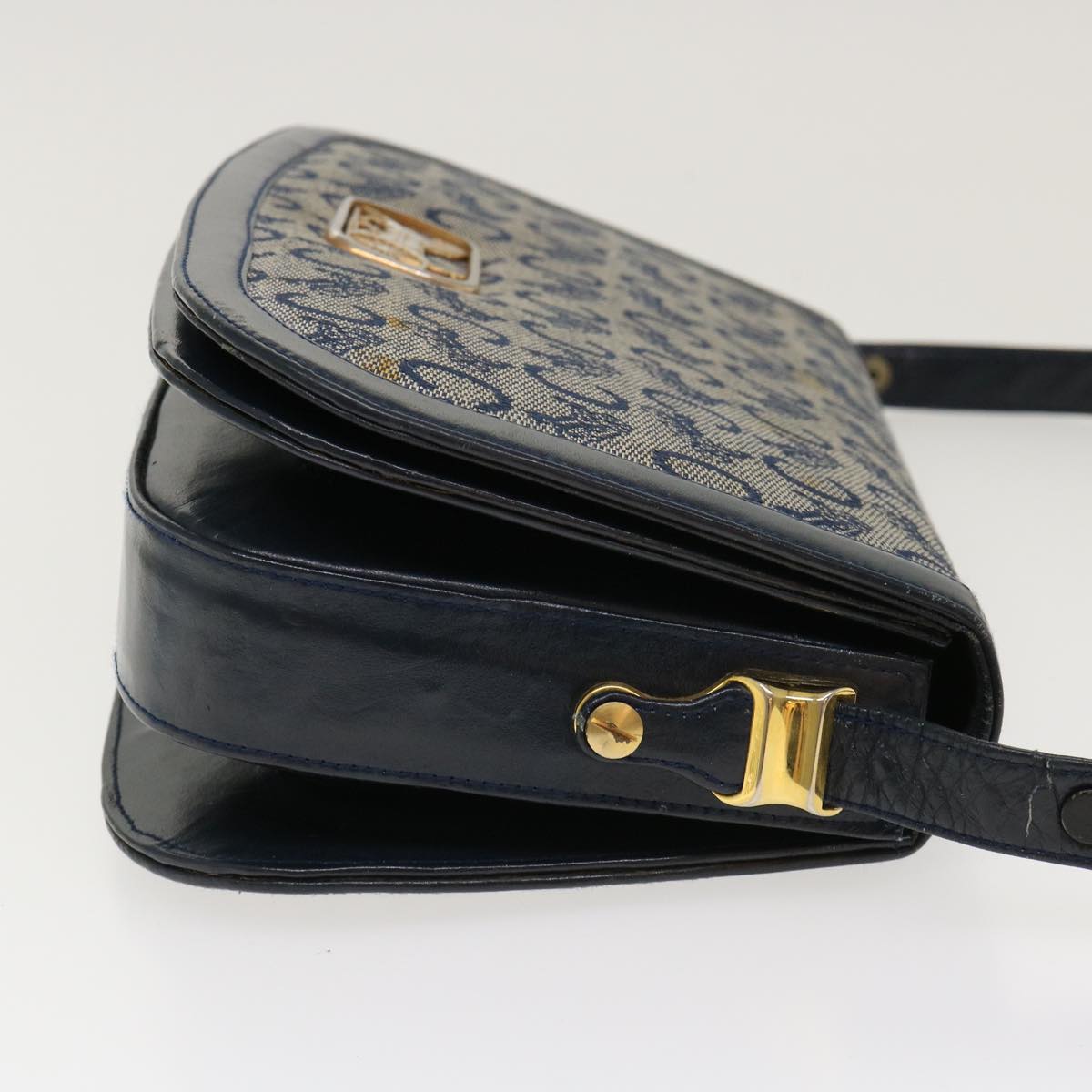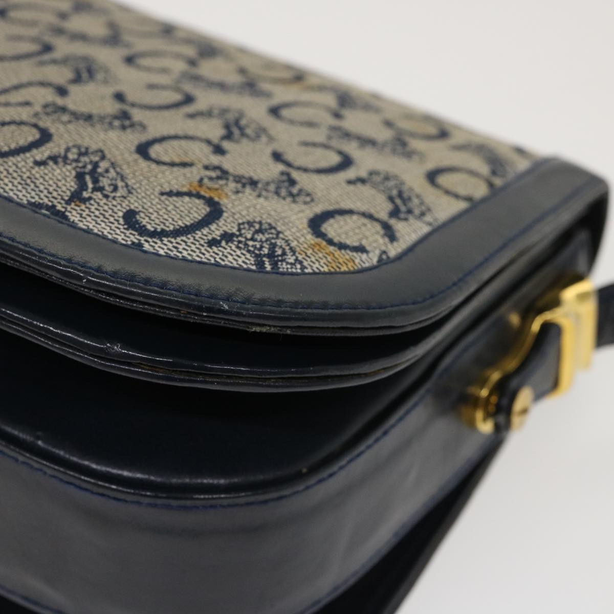 CELINE C Macadam Canvas Horse Carriage Shoulder Bag Navy Auth 39948