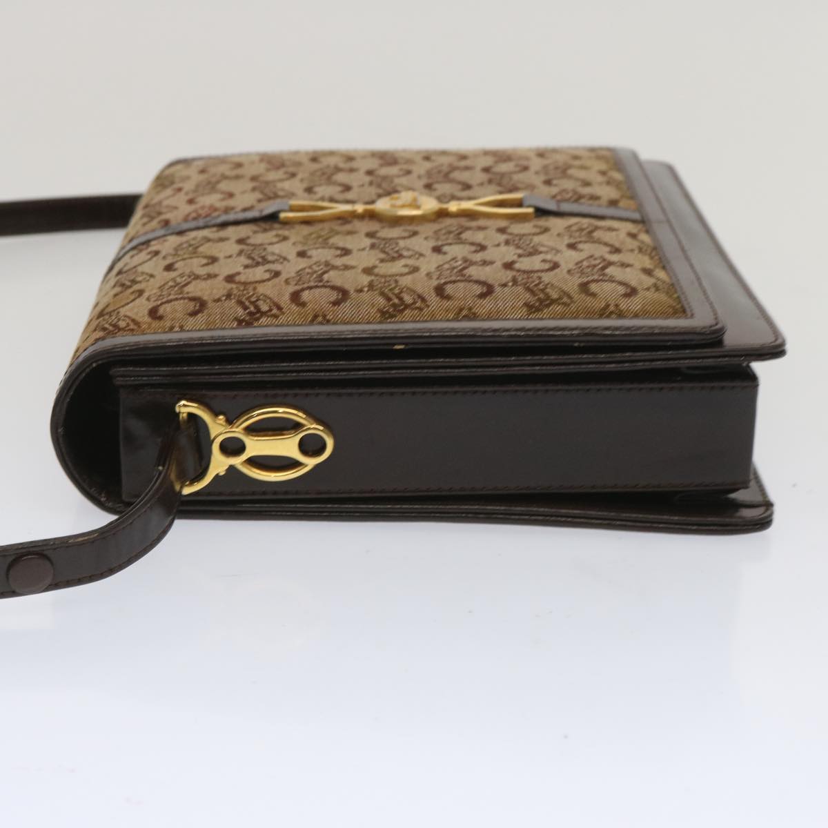 CELINE C Macadam Canvas Shoulder Bag Beige Auth ar11457B