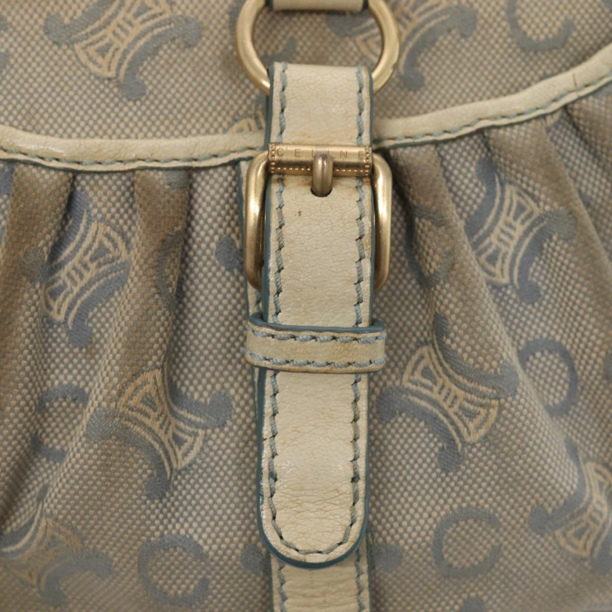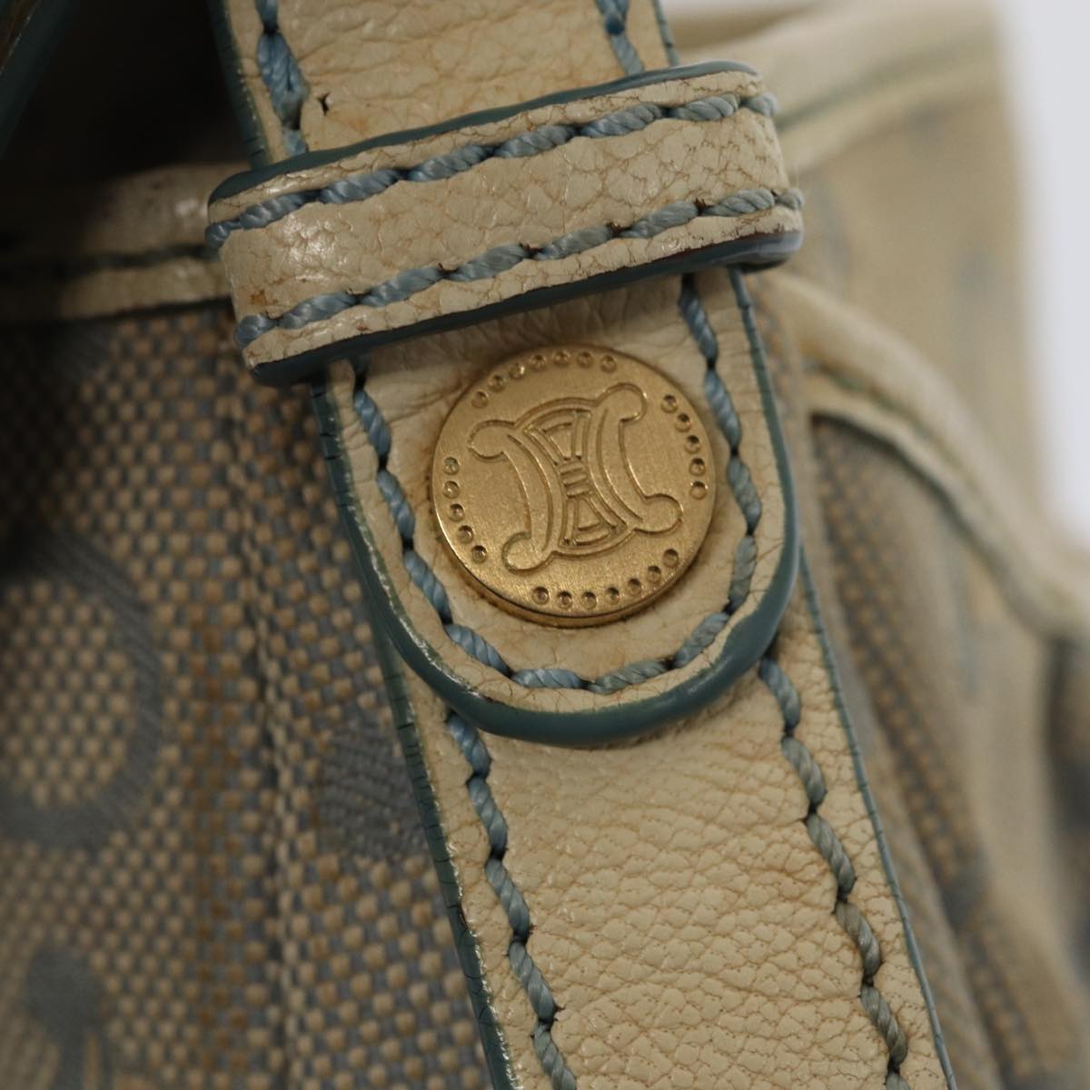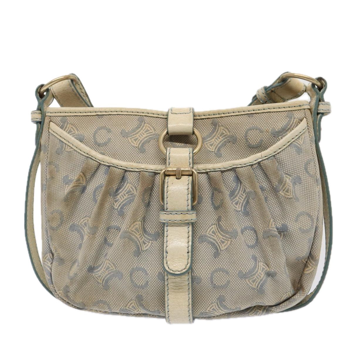 CELINE C Macadam Canvas Shoulder Bag Leather Light Blue White gold Auth bs16956