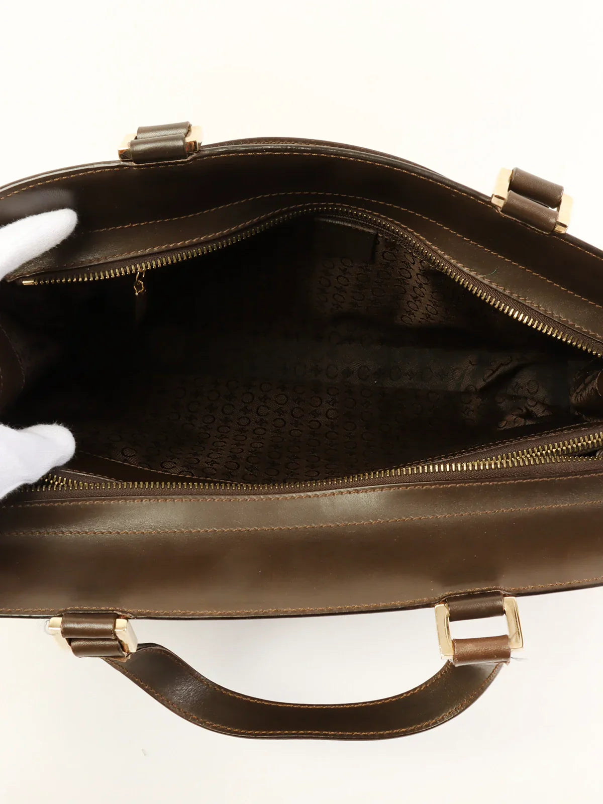 CELINE C Macadam Pattern Top Handle Bag Brown