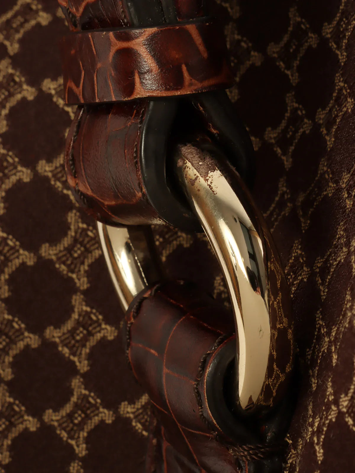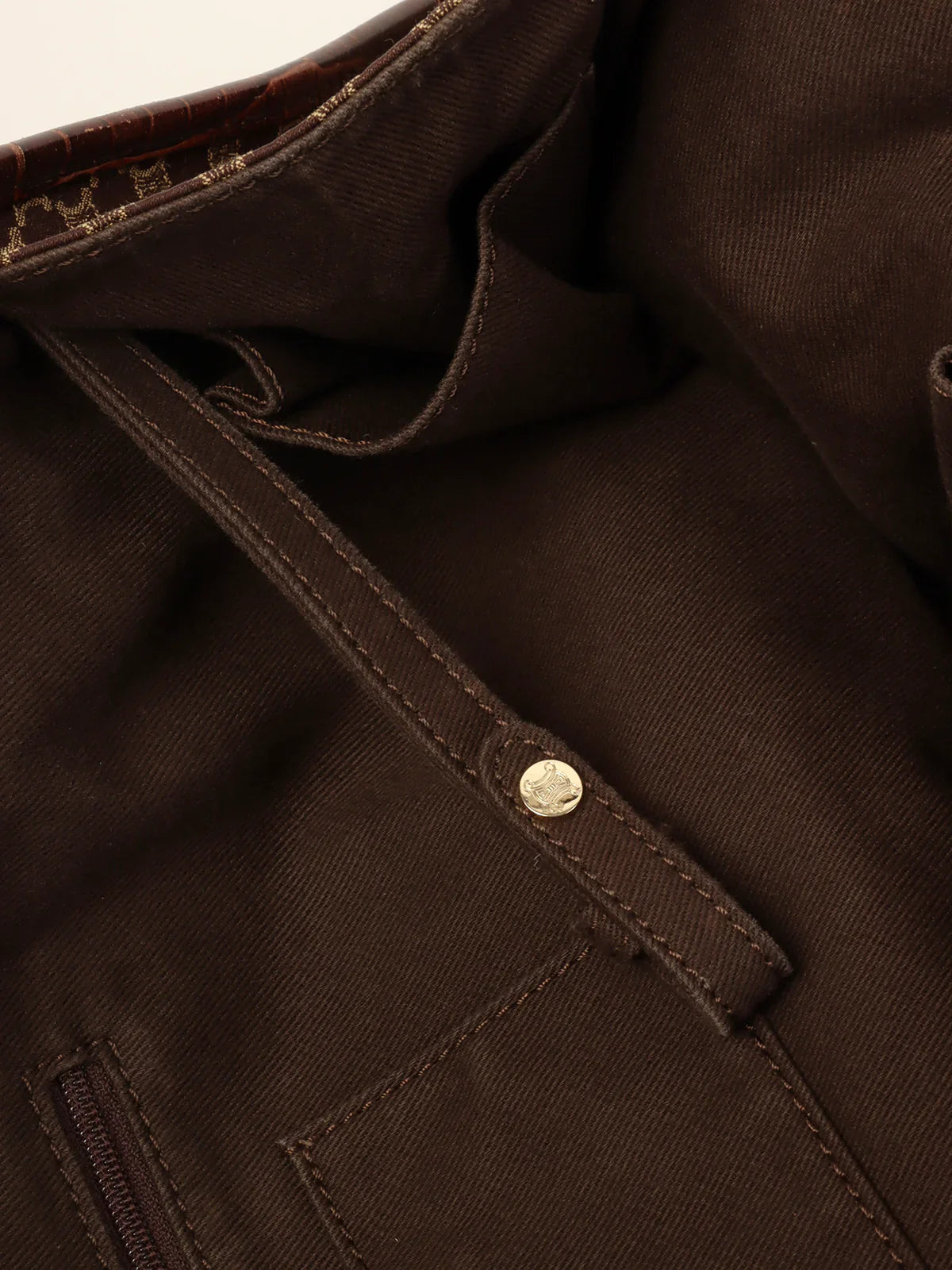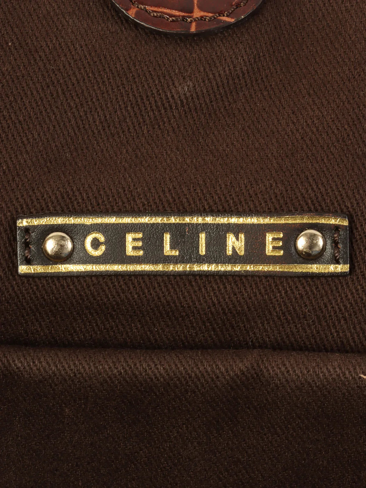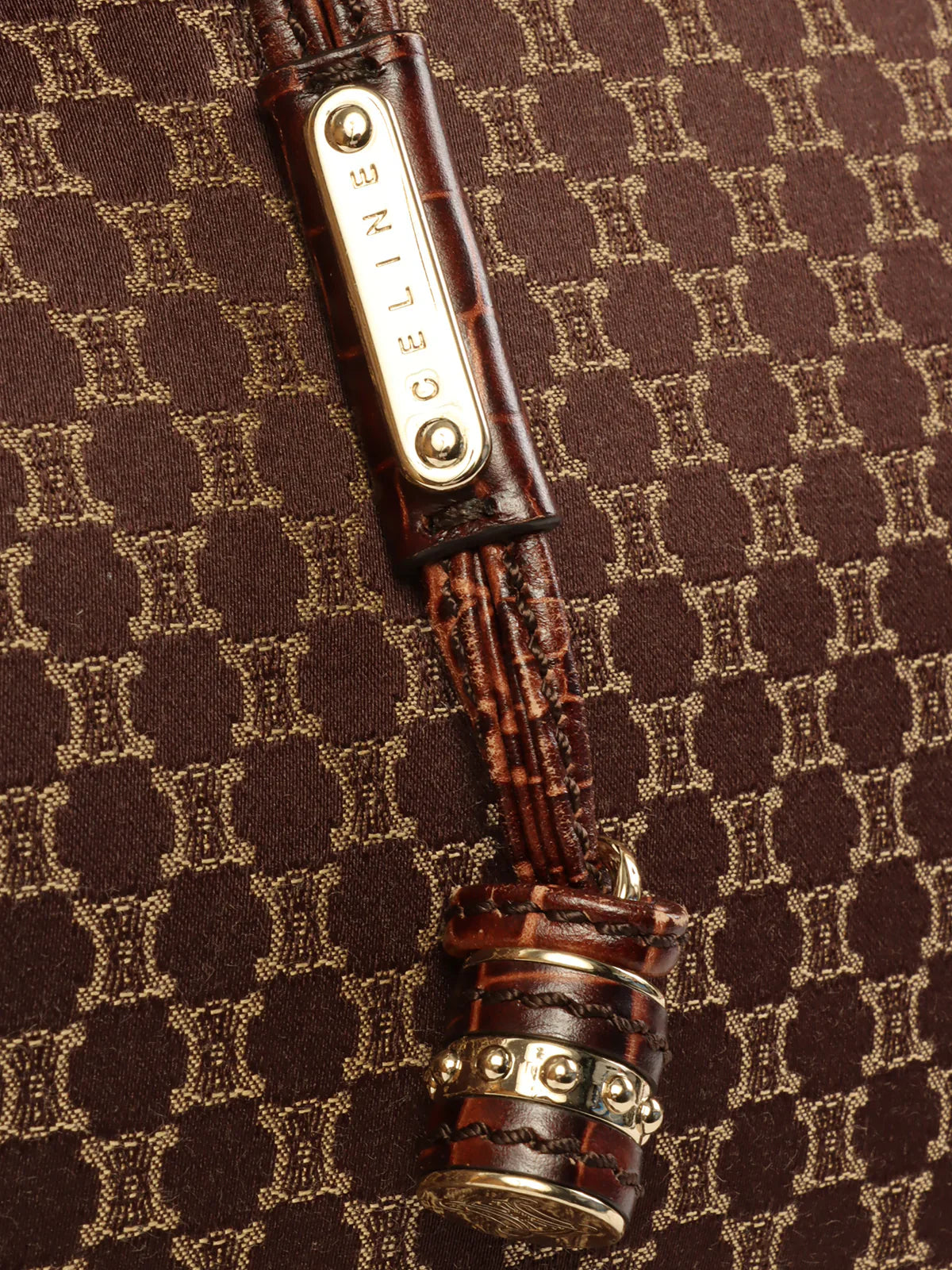 CELINE Canvas Crocodeile Embossed Combination Macadam Pattern Logo Plate Tote Bag Brown