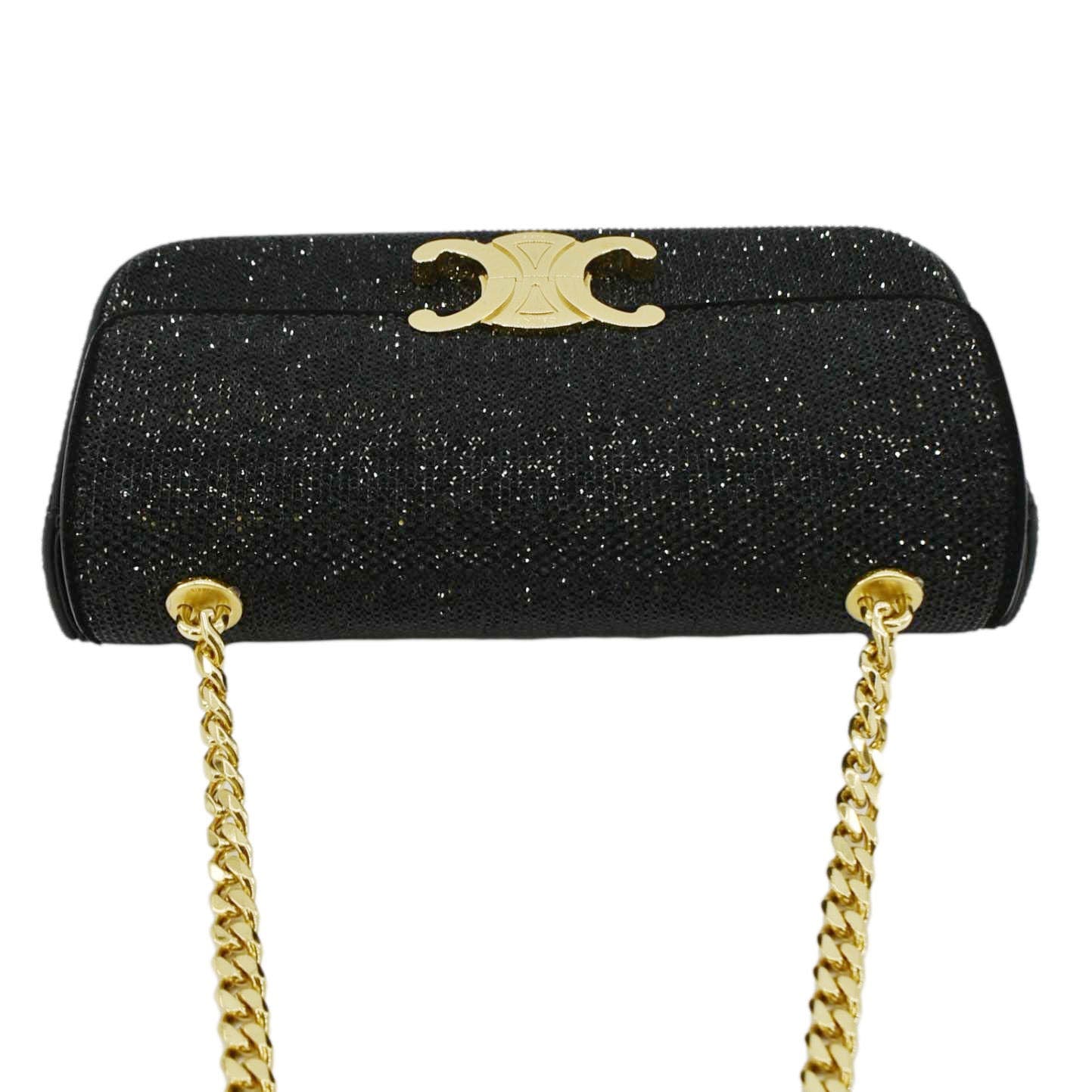 Celine Triomphe Claude Suede Strass Shoulder Bag Black
