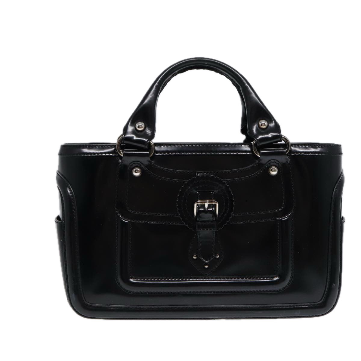 CELINE Hand Bag Leather Black Silver Auth bs17403