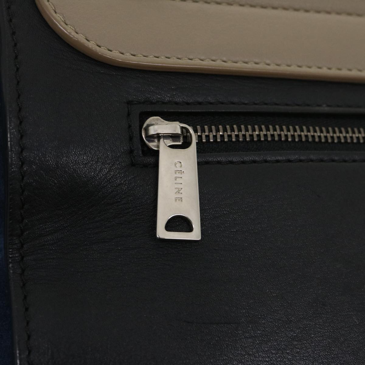 CELINE Hand Bag Leather Suede Gray Navy Auth am2375g