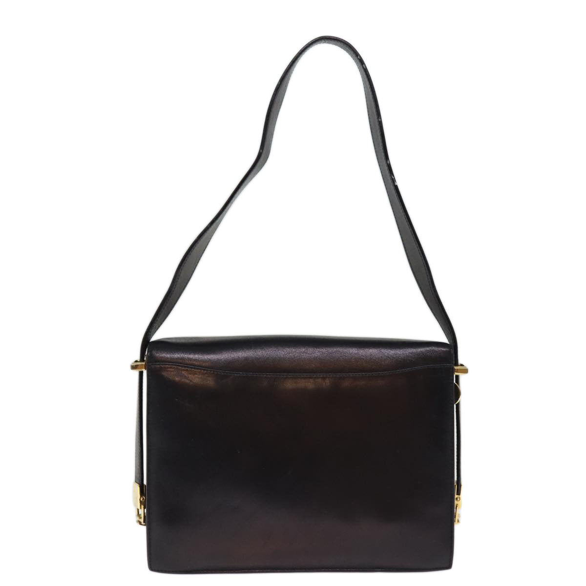 CELINE Horse Carriage Shoulder Bag Leather Black Auth 75266