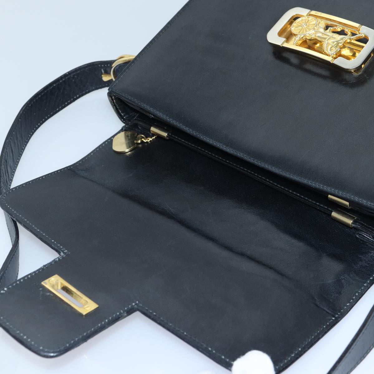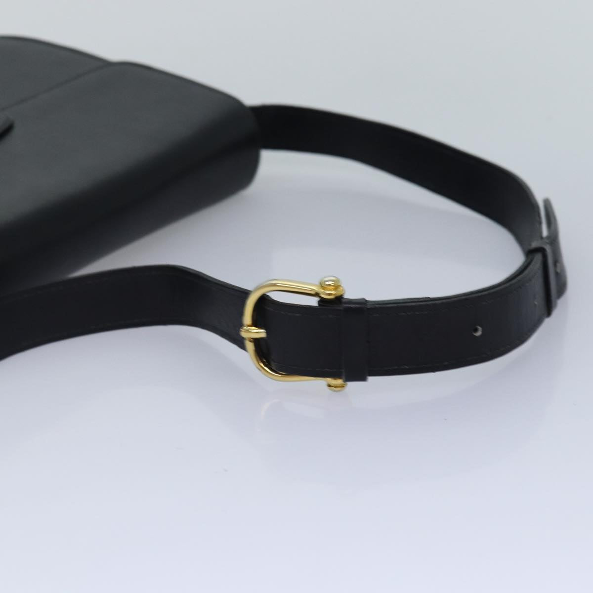 CELINE Horse Carriage Shoulder Bag Leather Black Gold Auth bs17653