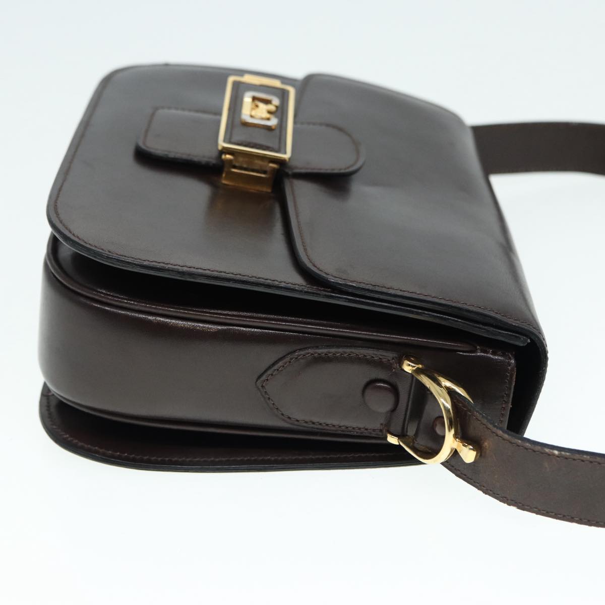 CELINE Horse Carriage Shoulder Bag Leather Black Gold Auth ki4823