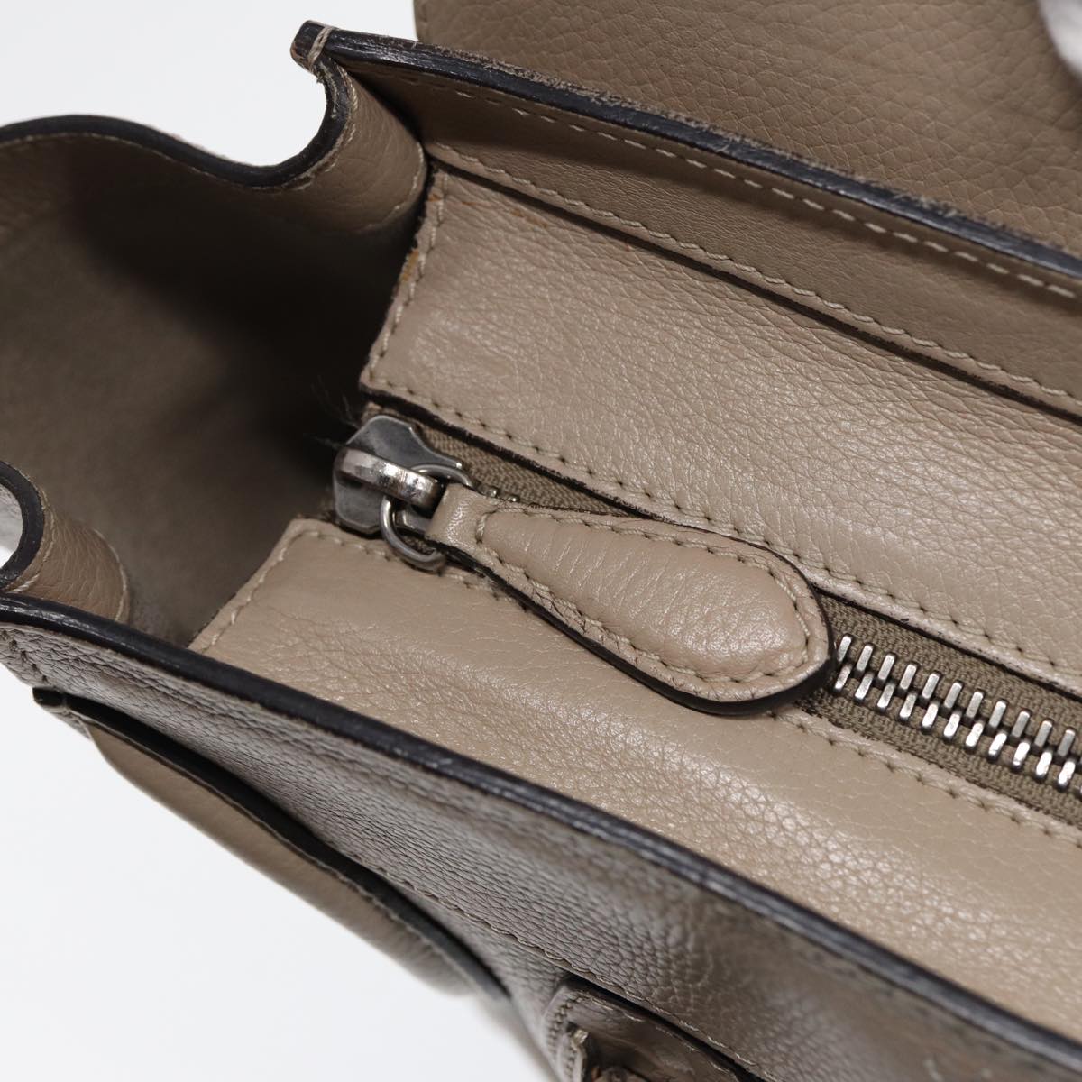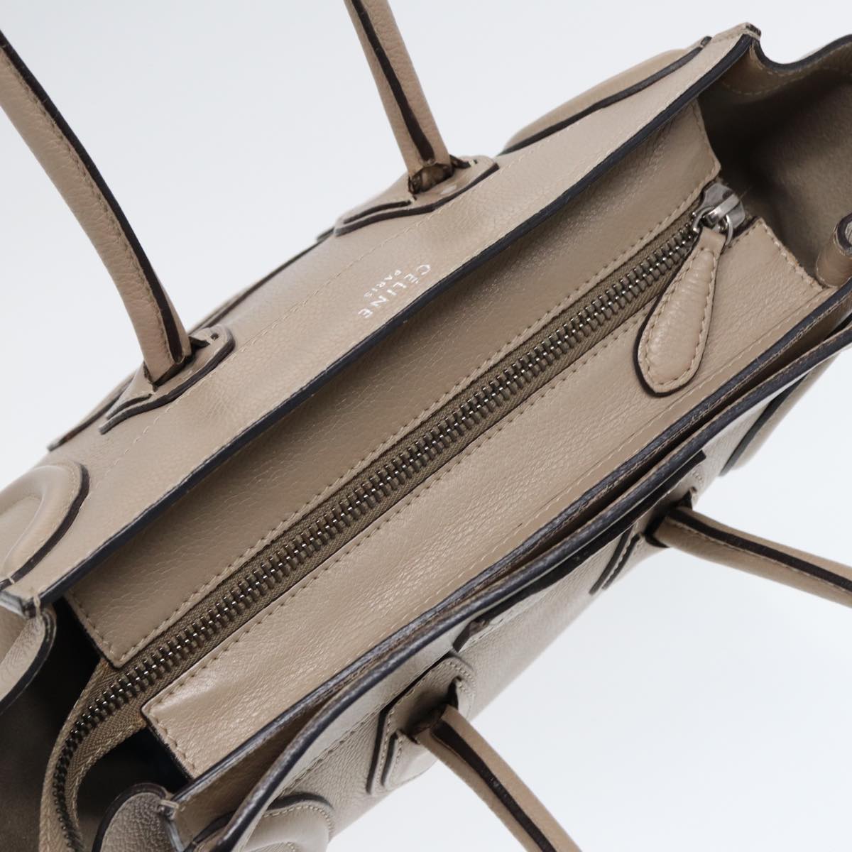 Celine Luggage Micro Tote Bag Leather Beige Silver Auth bs17402