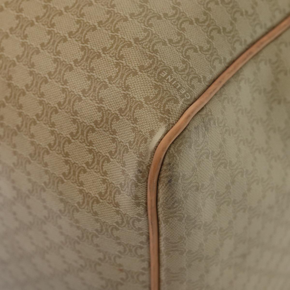 CELINE Macadam Canvas Boston Bag Beige Auth yk13637