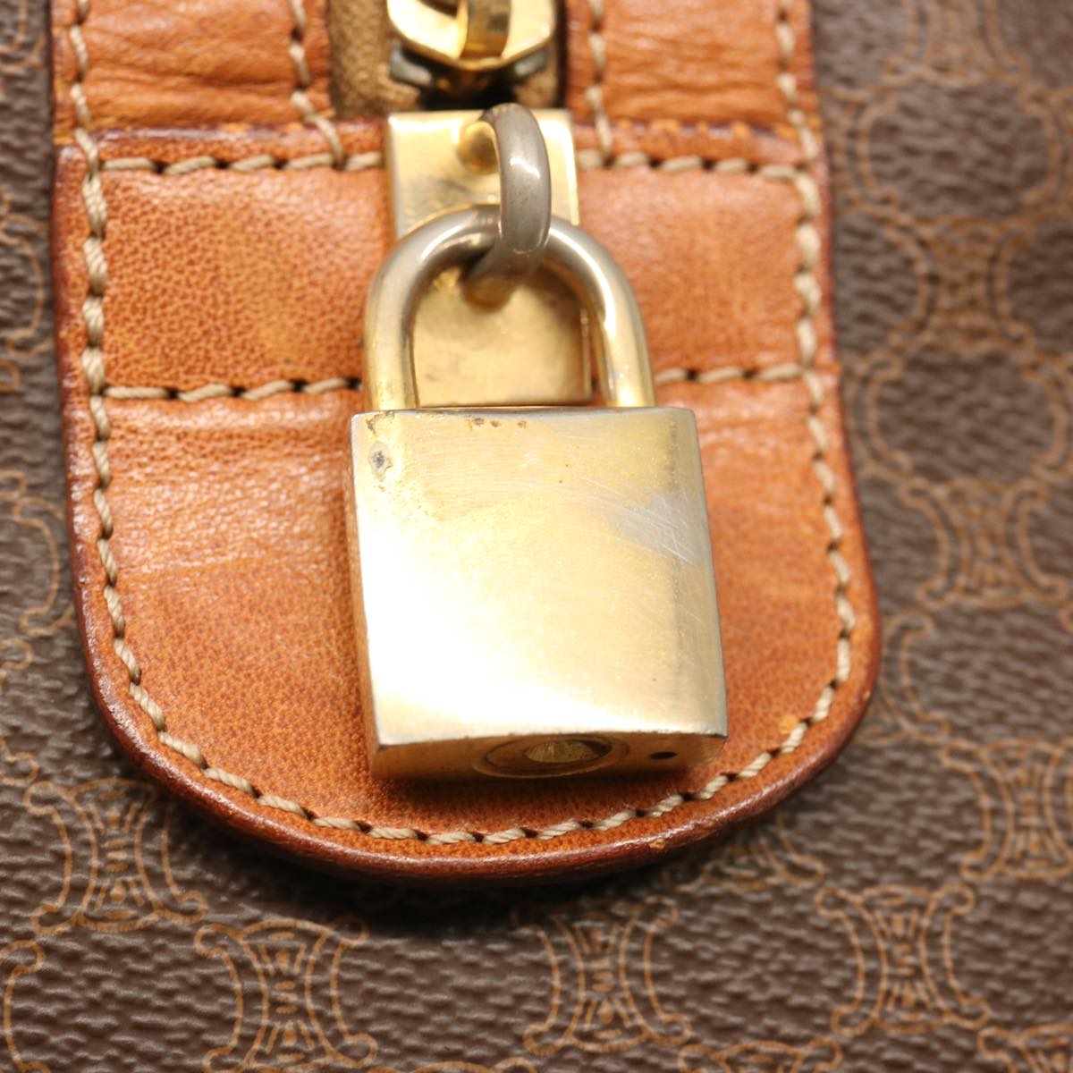 CELINE Macadam Canvas Boston Bag PVC Brown Auth ki4461