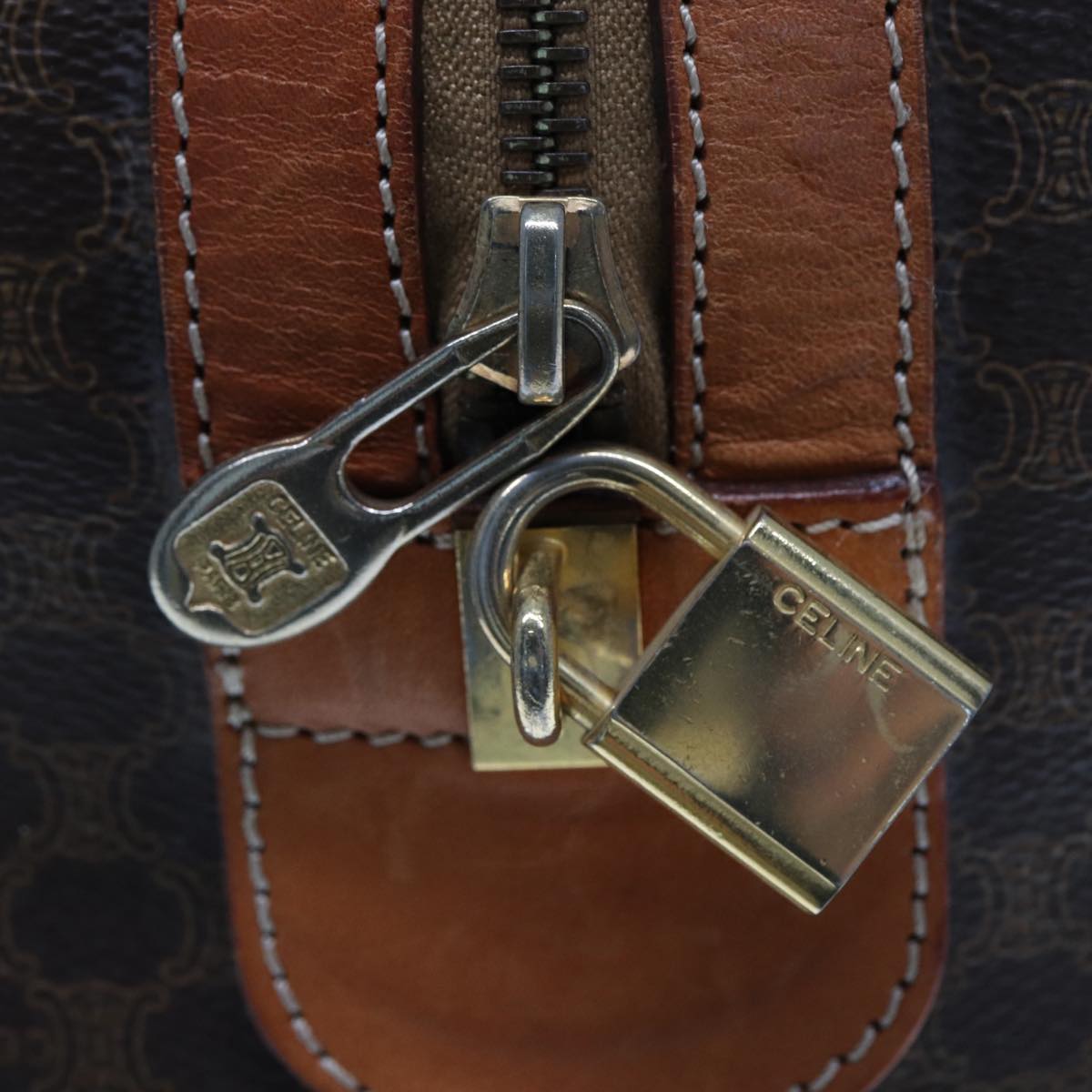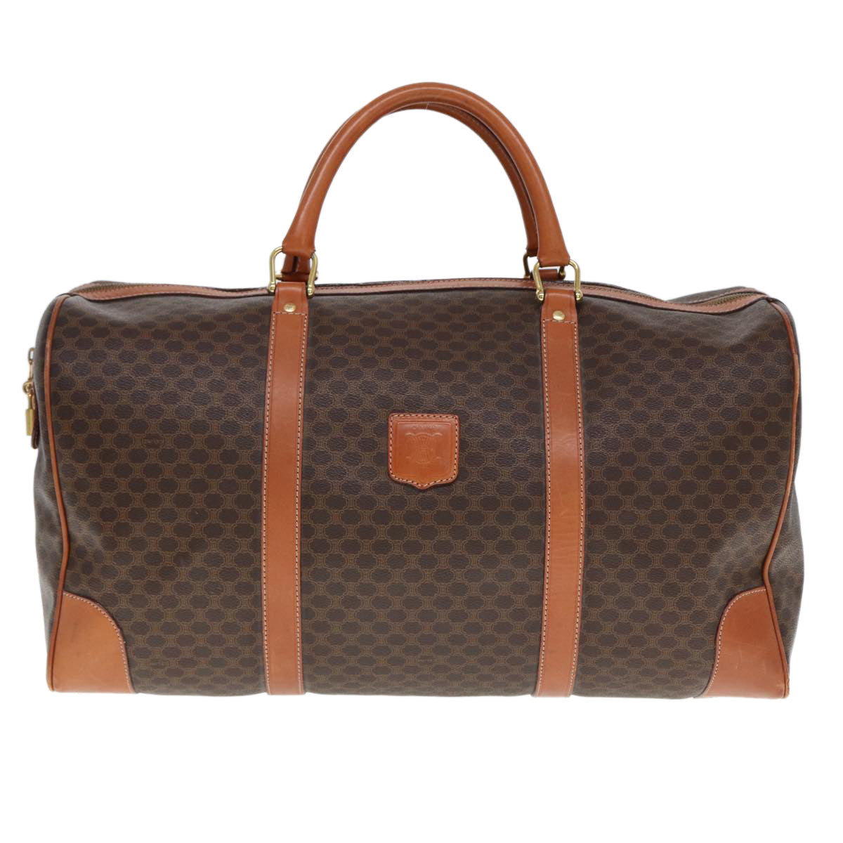 Celine Macadam Canvas Boston Bag PVC Leather Brown 77390
