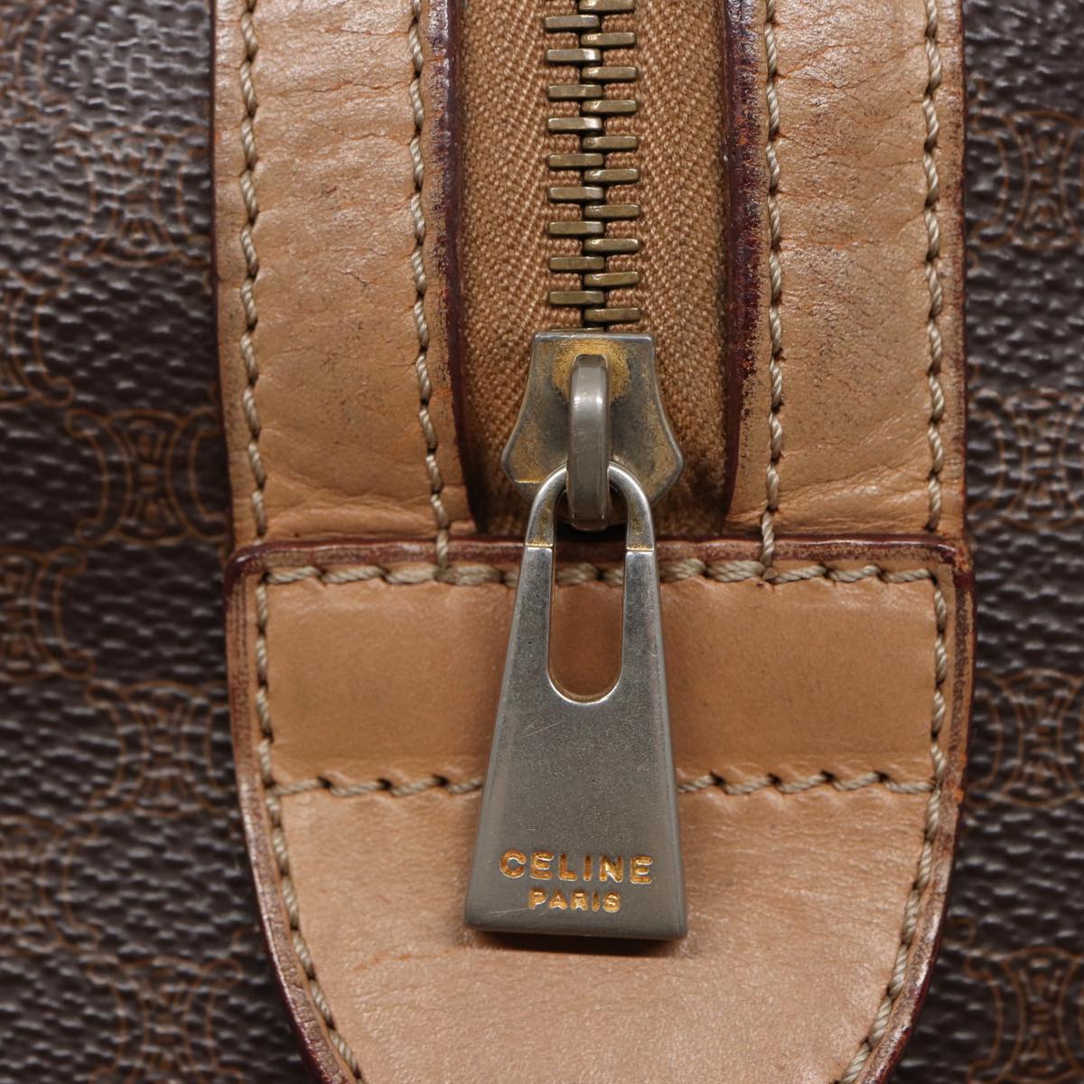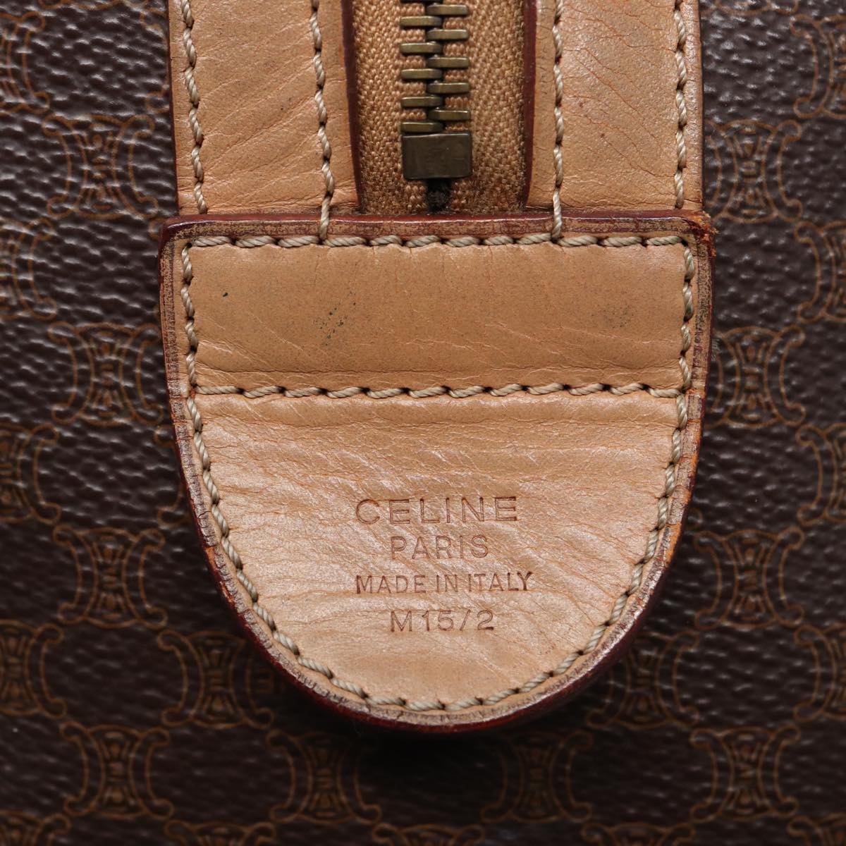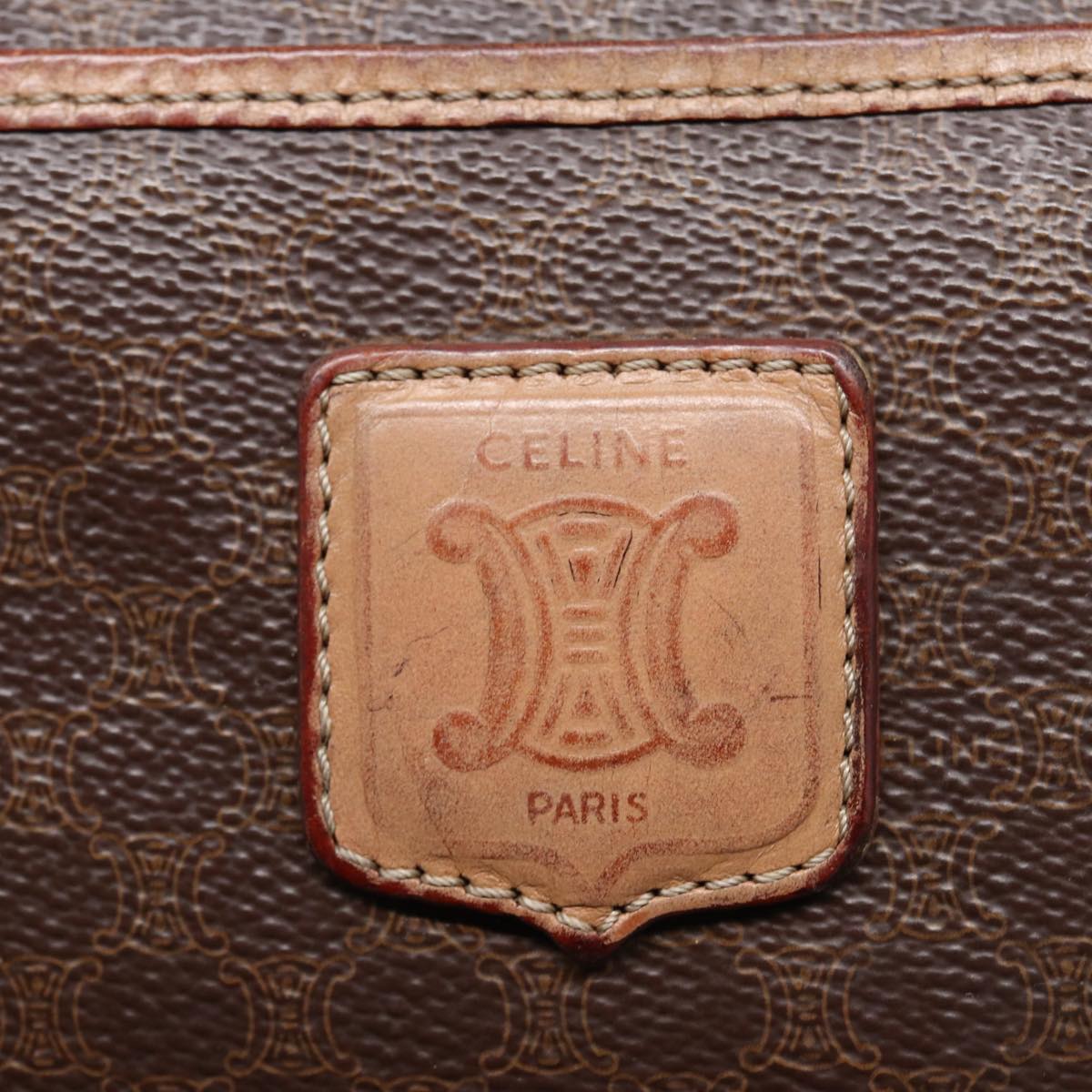 CELINE Macadam Canvas Boston Bag PVC Leather Brown Auth 79183