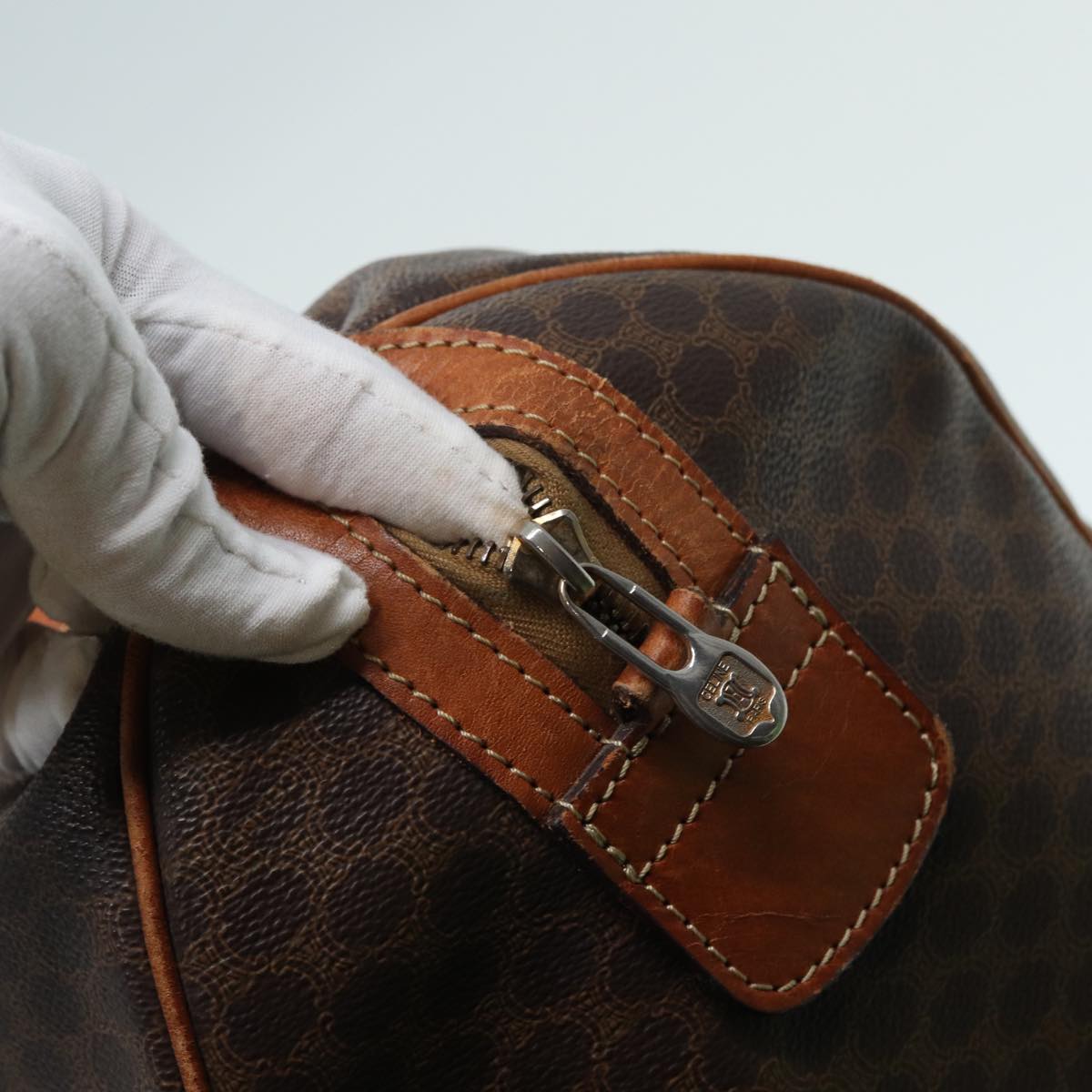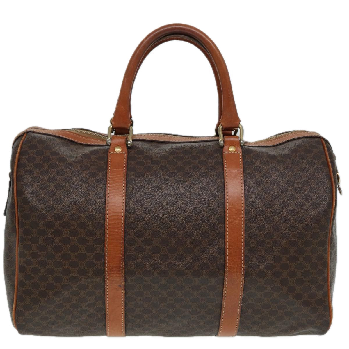 CELINE Macadam Canvas Boston Bag PVC Leather Brown Auth 83945