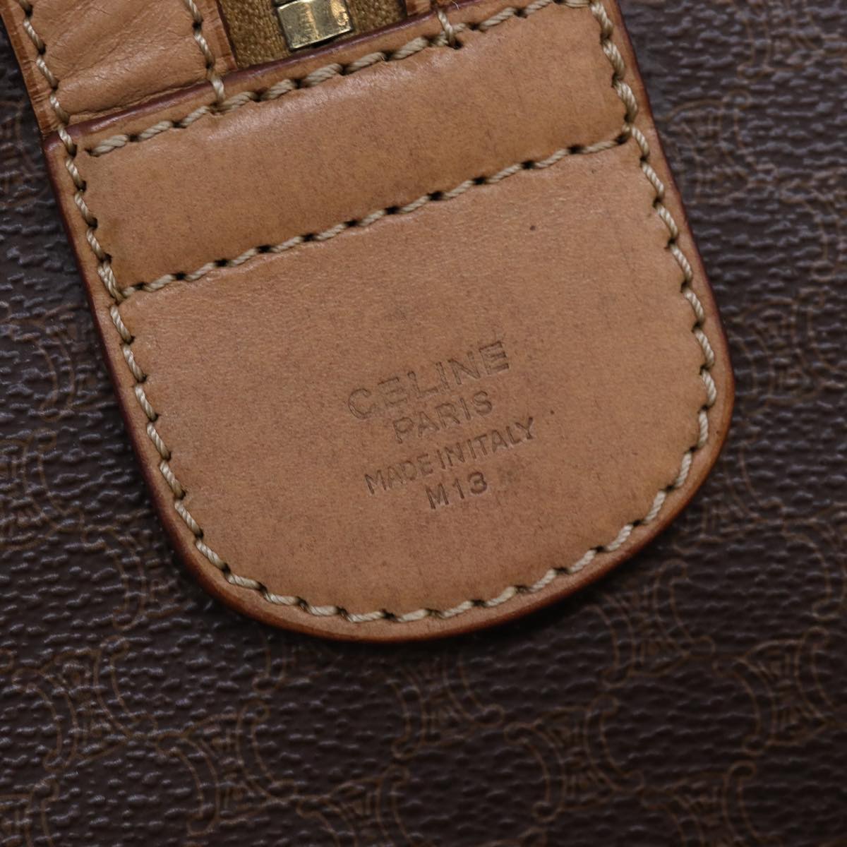 CELINE Macadam Canvas Boston Bag PVC Leather Brown Auth fm3673